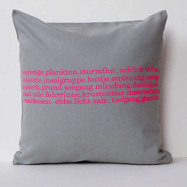 Fresh. Unser Typo Meer Kissen in Hellgrau/Neonpink. Handgedruckt in Hamburg. Mehr bei www.HerrFuchs.net #fresh #neon #kissen #herrfuchs #meer #hamburg #typo #handgedruckt #typokissen #pink #neonpink