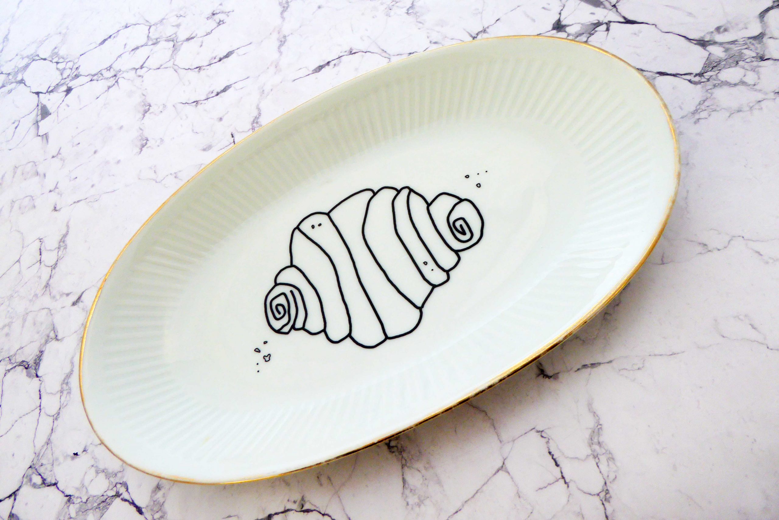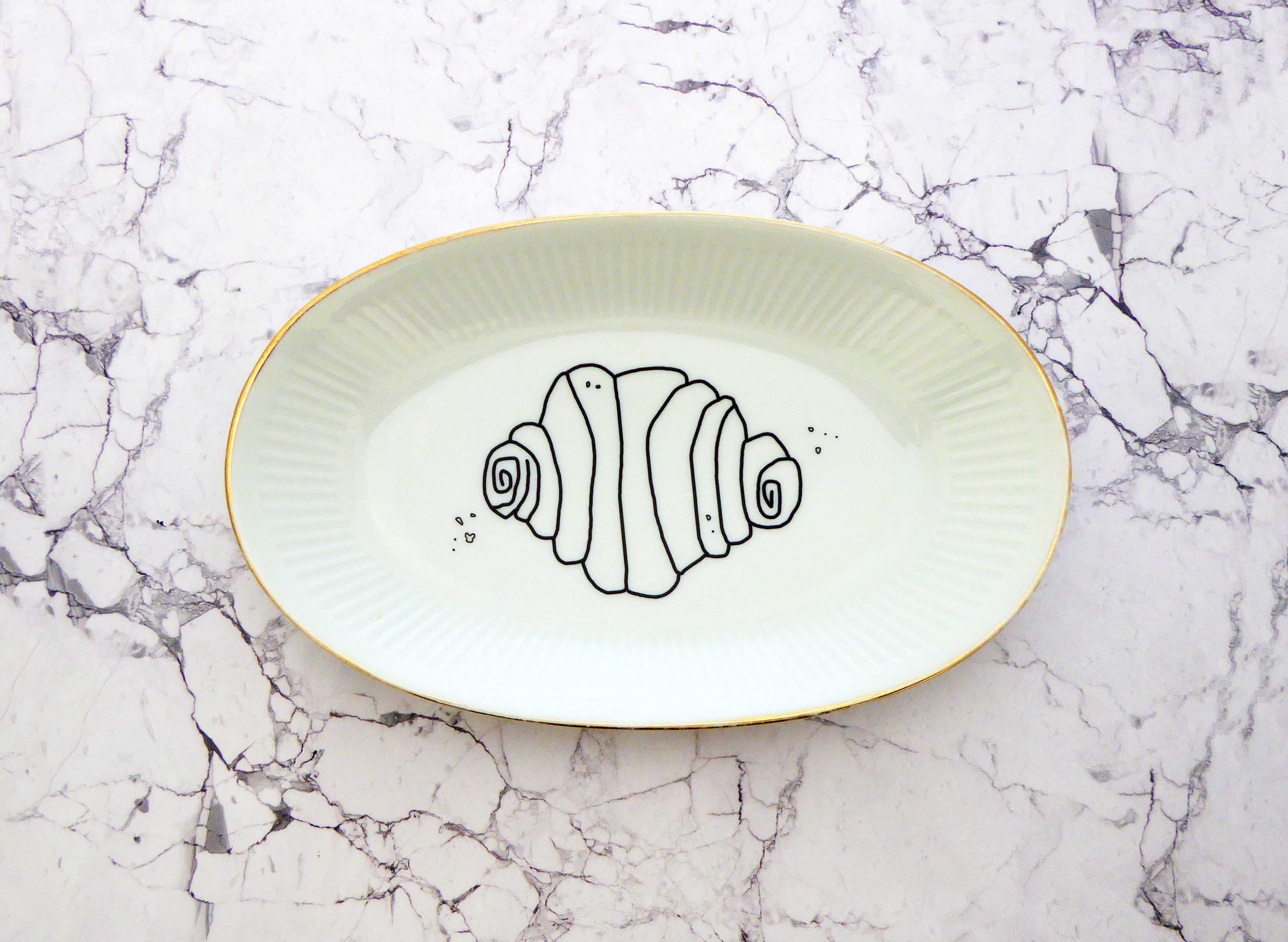 Wandplatte Franzbrötchen vintage Herr Fuchs Teller Gold 24cm Hamburg Wohnen