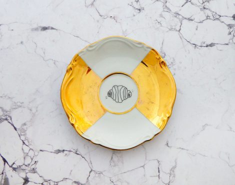 Jeder Wandteller wird handgefertigt und jeder der vintage Teller ist immer wieder ein Einzelstück. Dieser schöne Wandteller hat einen schönenes Decor in Gold und mit unserem Franzbrötchen Motiv kann er für alle Dekozwecke genutz werden.