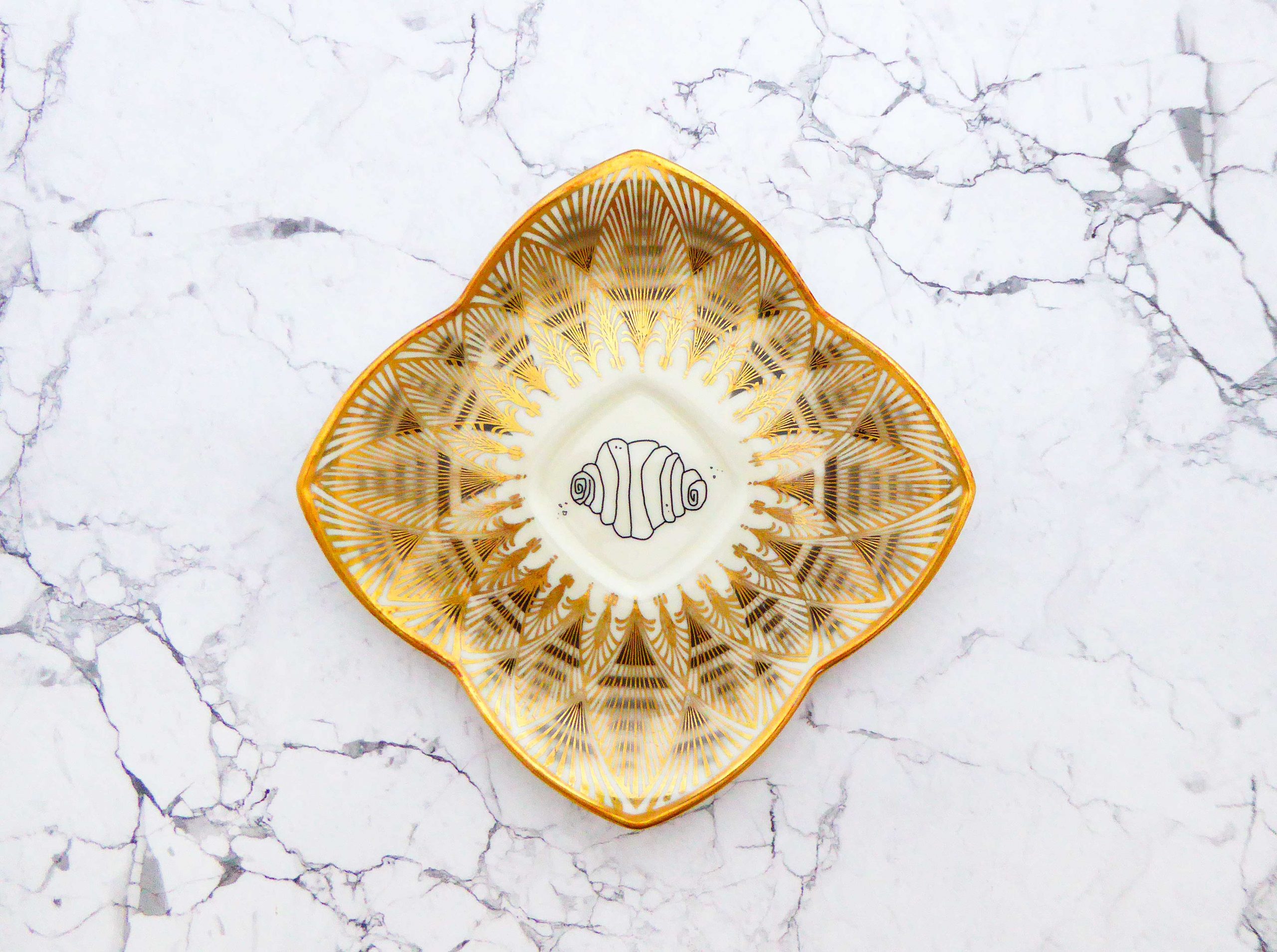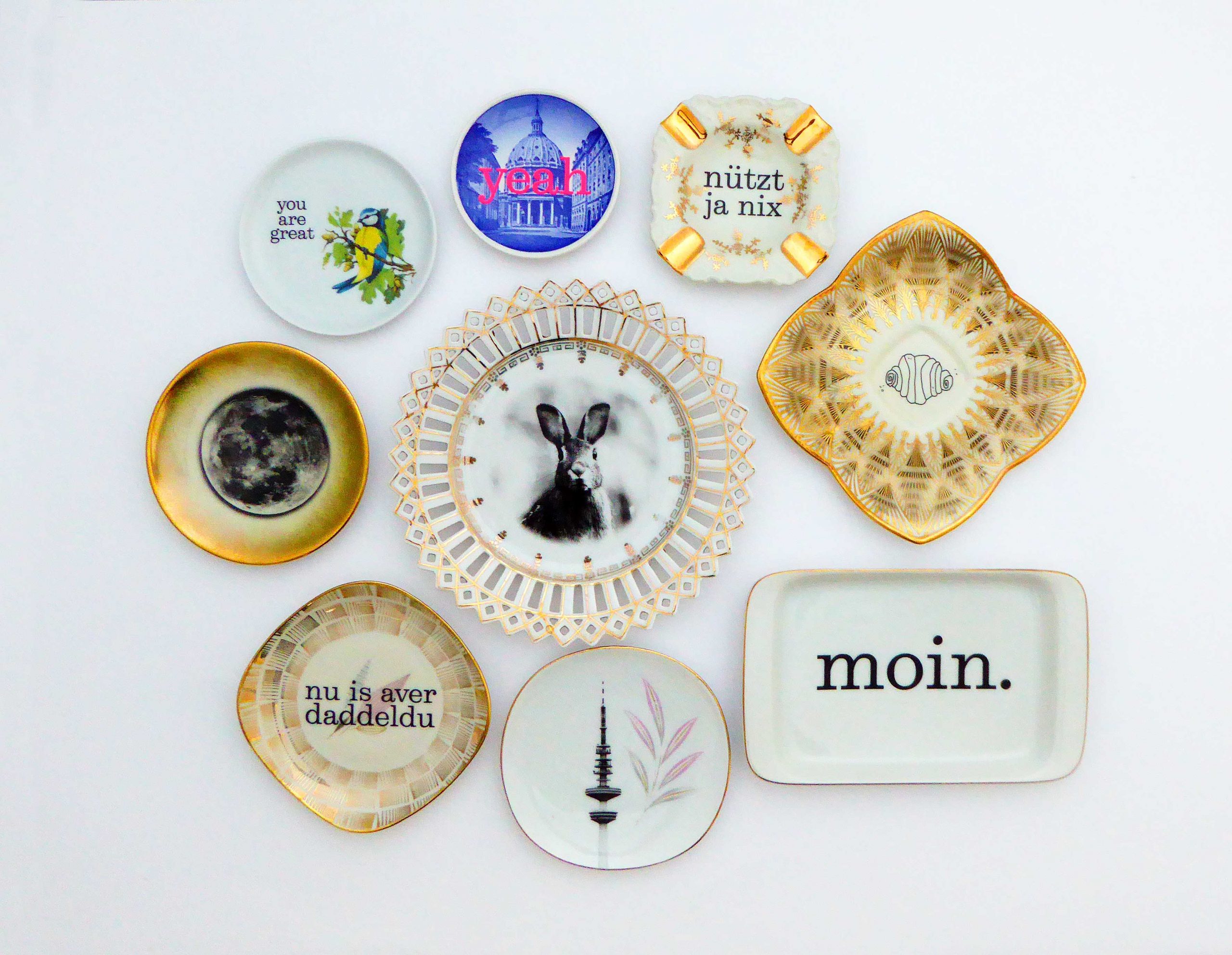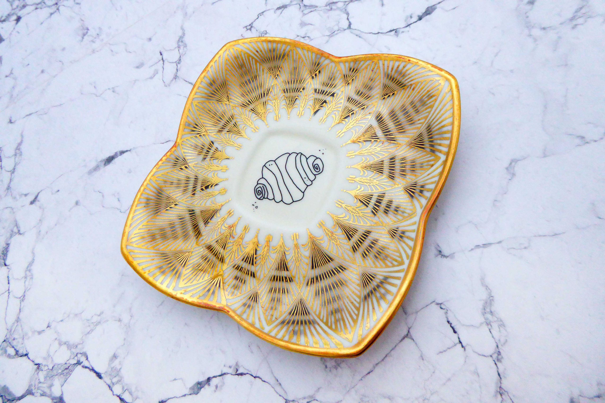 Wandteller Franzbrötchen vintage Herr Fuchs Teller Gold 16cm Hamburg Wohnen eckig