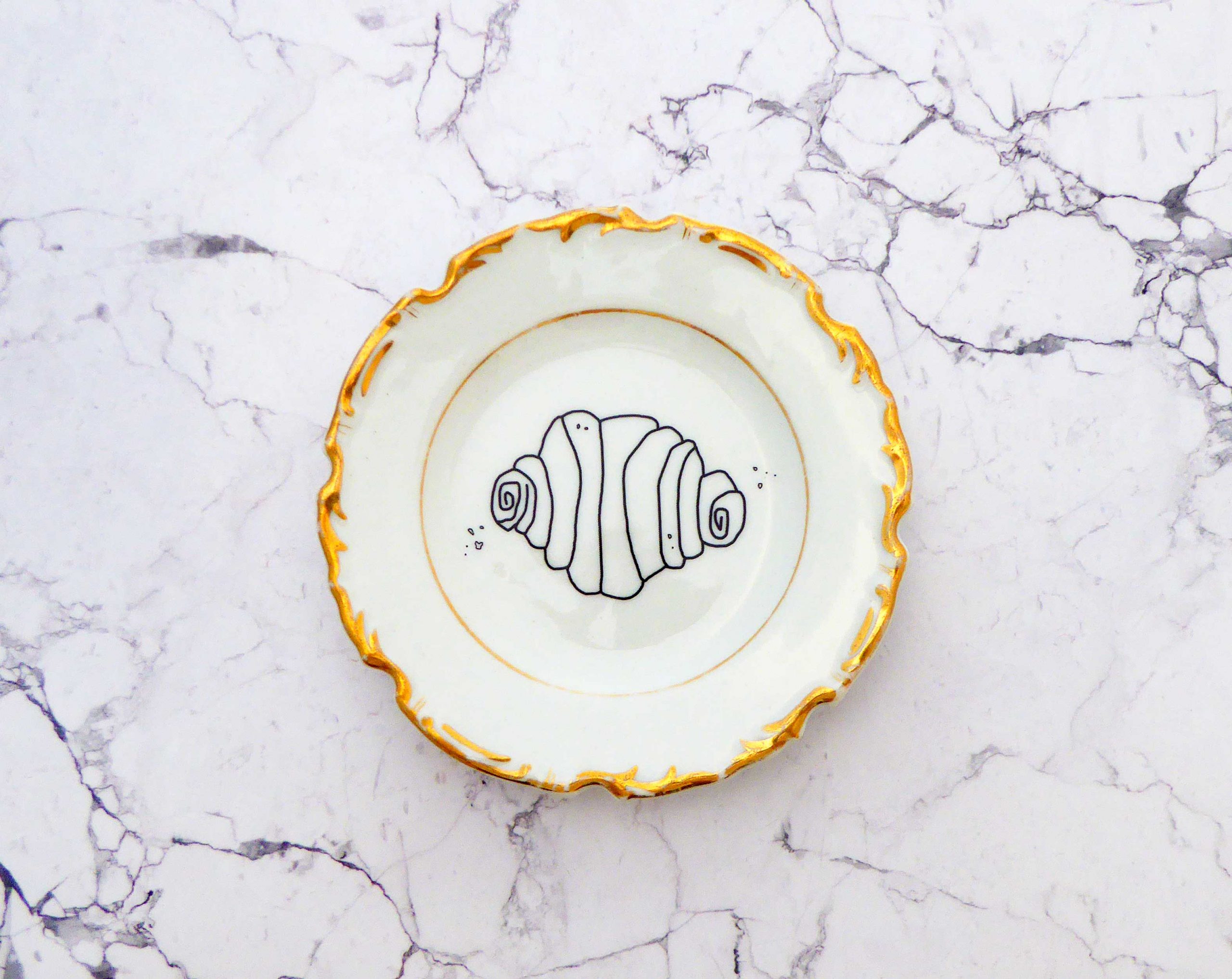 Jeder Wandteller wird handgefertigt und jeder der vintage Teller ist immer wieder ein Einzelstück. Dieser schöne Wandteller hat einen schönes Decor Muster im Porzellan und mit unserem Franzbrötchen Motiv kann er für alle Dekozwecke genutz werden.