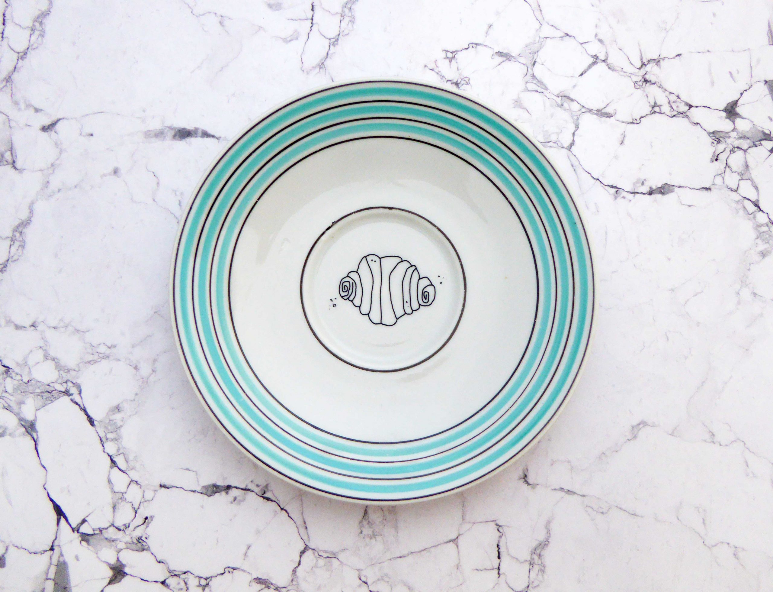 Unser Vintage Wandteller mit unserem Franzbrötchen Motiv ist ein besonderes Stück für Deine Wand.
