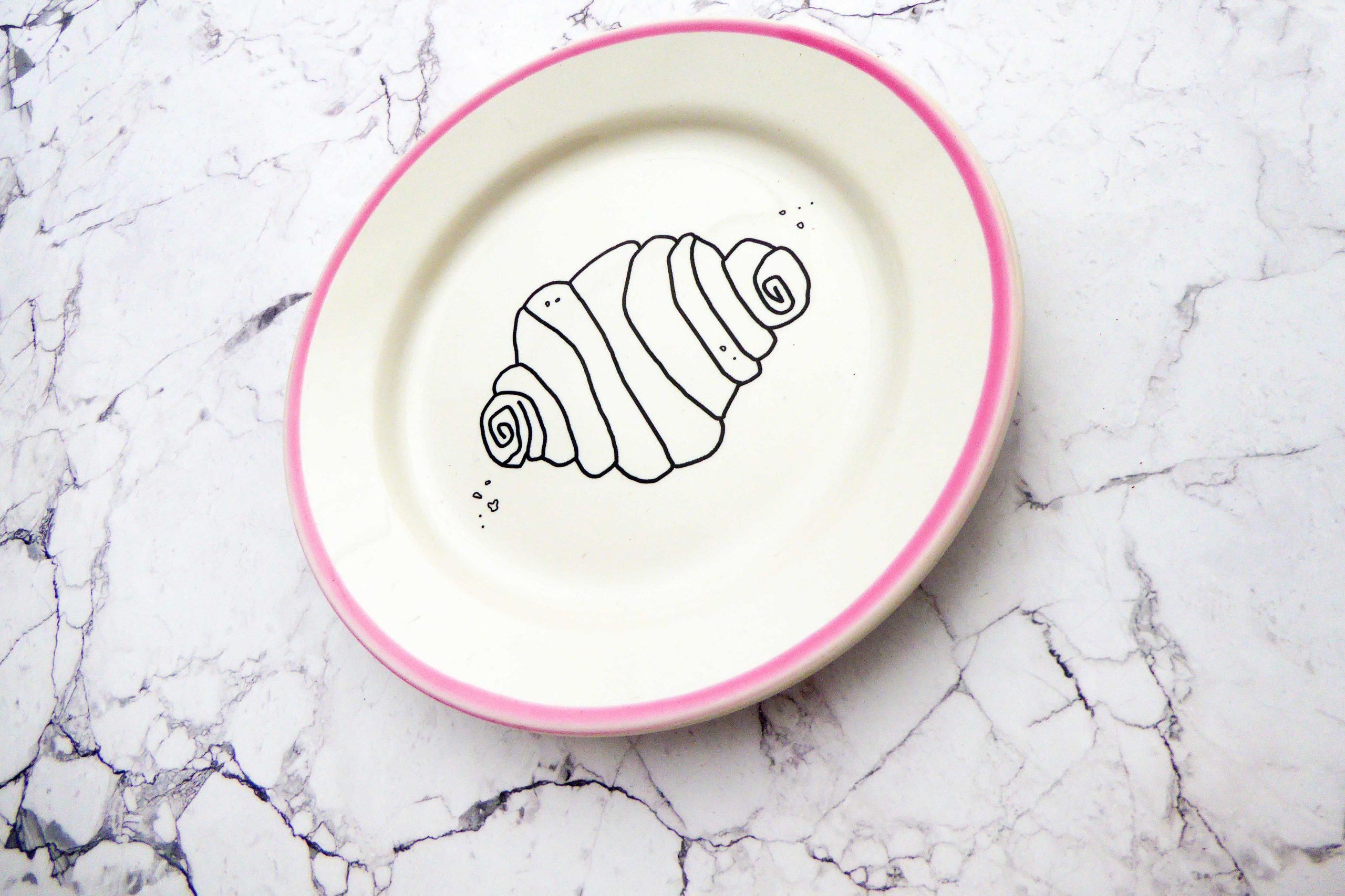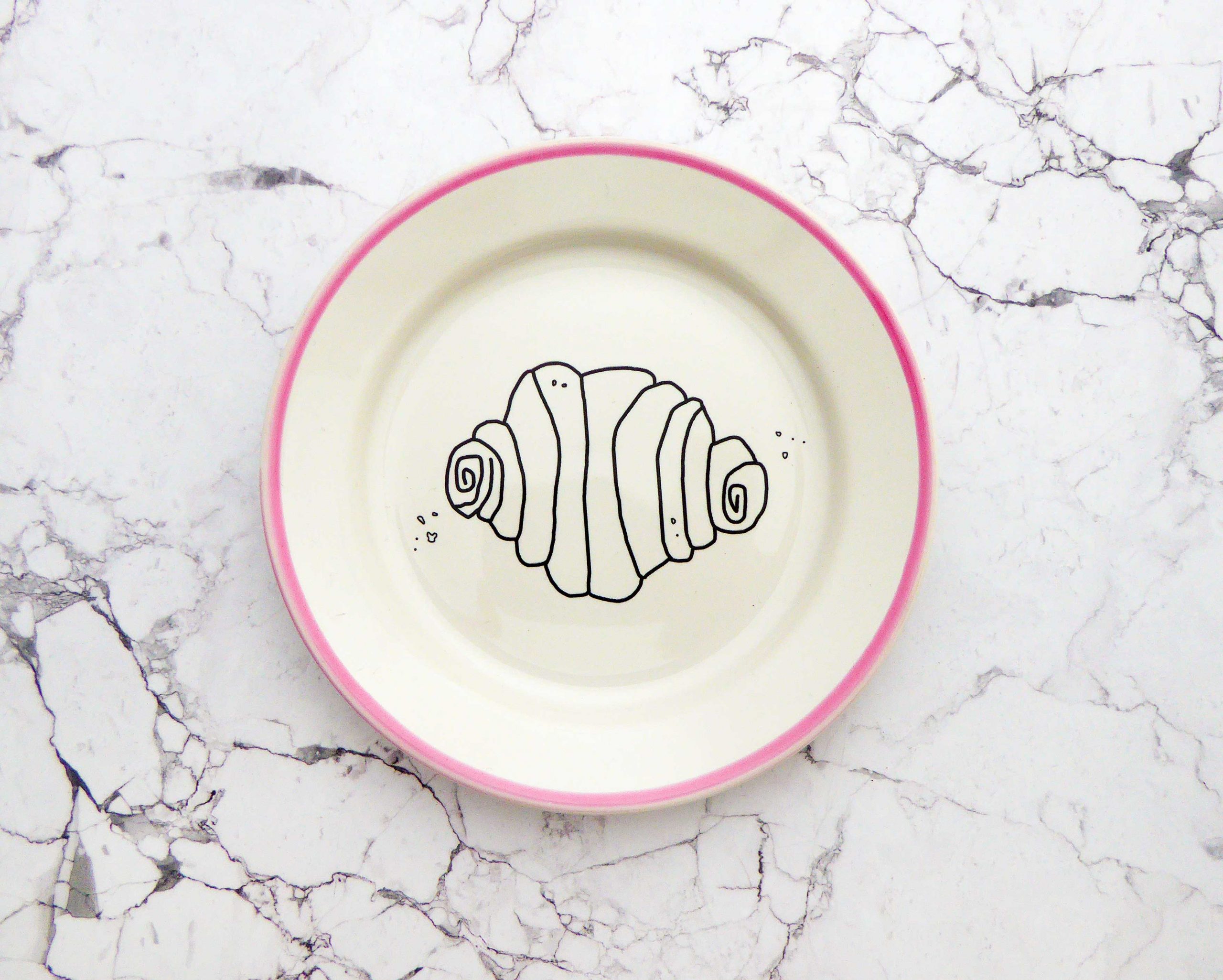 Jeder Wandteller wird handgefertigt und jeder der vintage Teller ist immer wieder ein Einzelstück. Dieser schöne Wandteller hat einen schönen Rand in rosa und mit unserem Franzbrötchen Motiv kann er für alle Dekozwecke genutz werden.