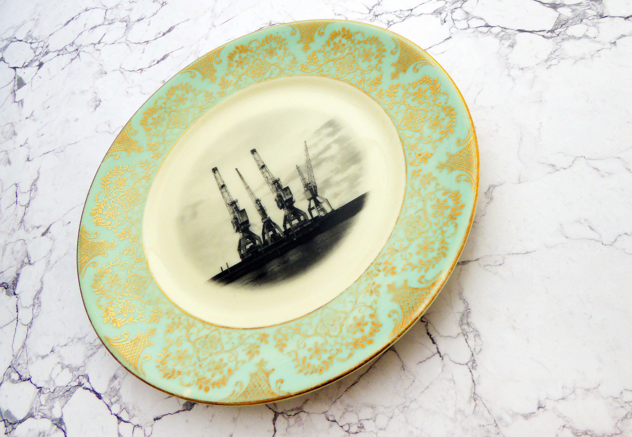 Unser Vintage Wandteller mit unsere Hamburg Hafen Kräne ist ein besonderes Stück für Dein Zuhause.