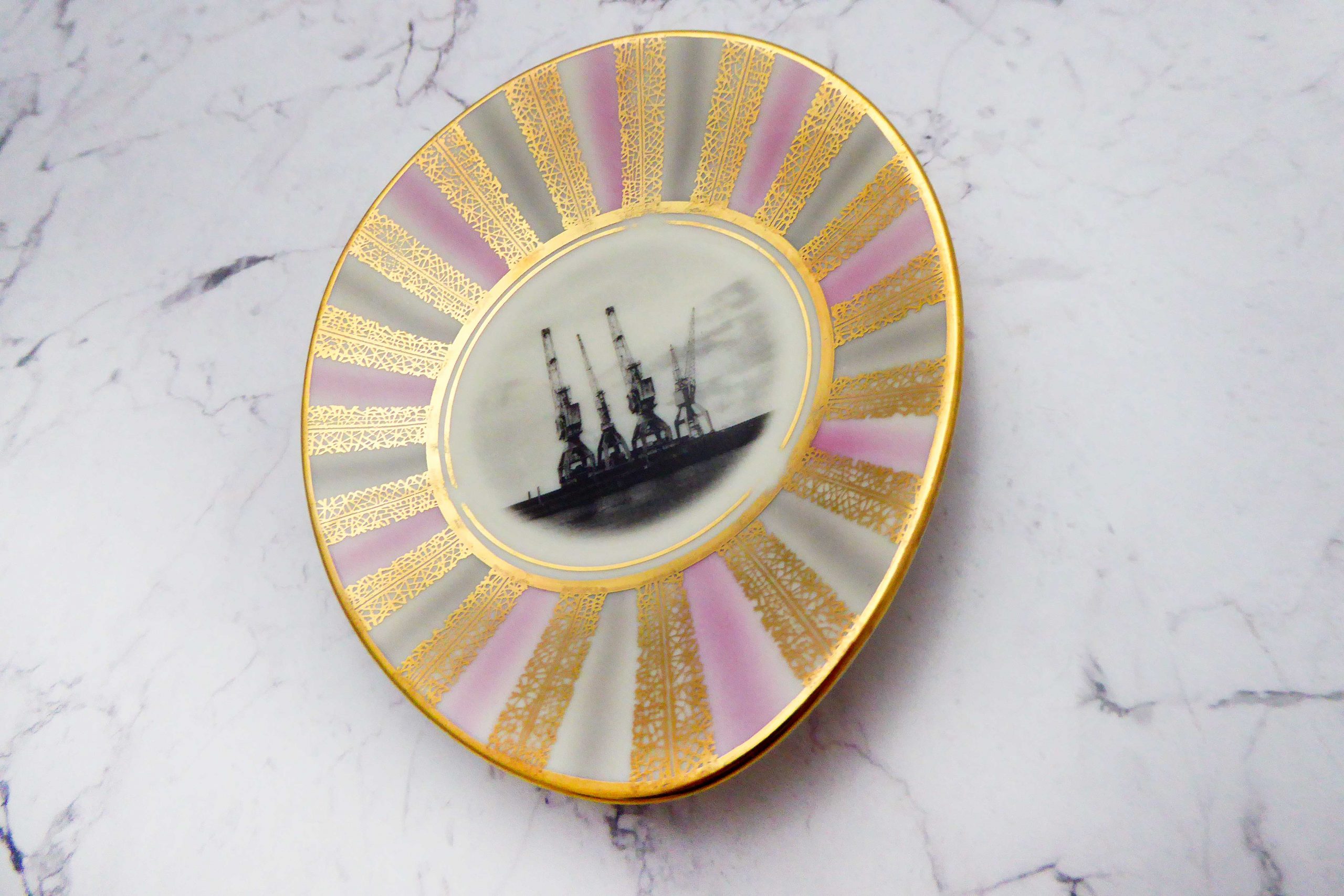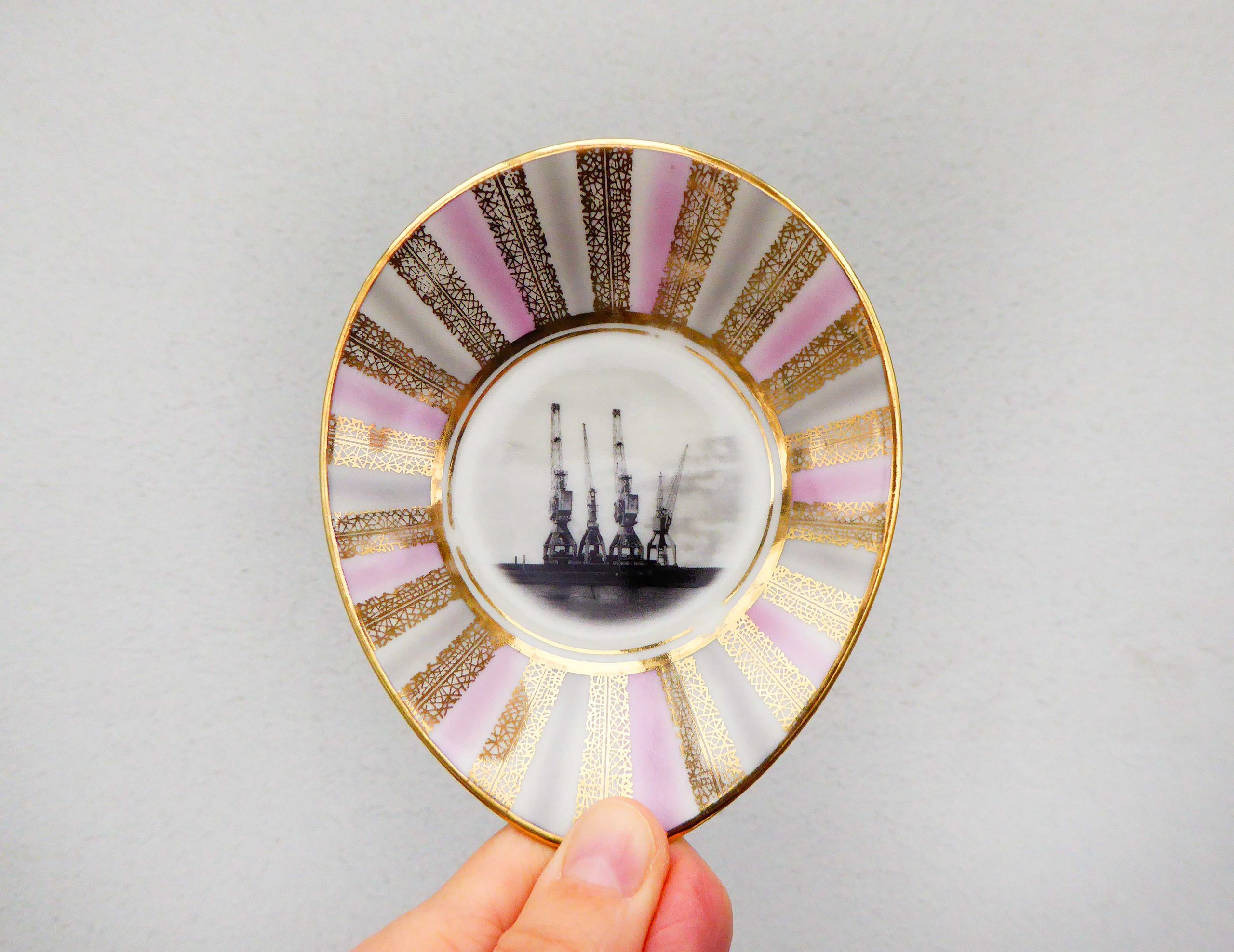 Wandteller Hamburger Hafen Kräne Rosa Gold vintage Herr Fuchs Streifen mini 11cm