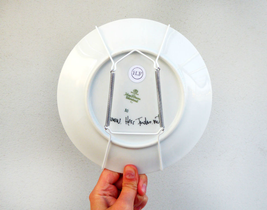 Jeder Teller ist mit einer Klammer versehen. Er kann also gleich an die Wand, wenn er bei Euch eintrifft.