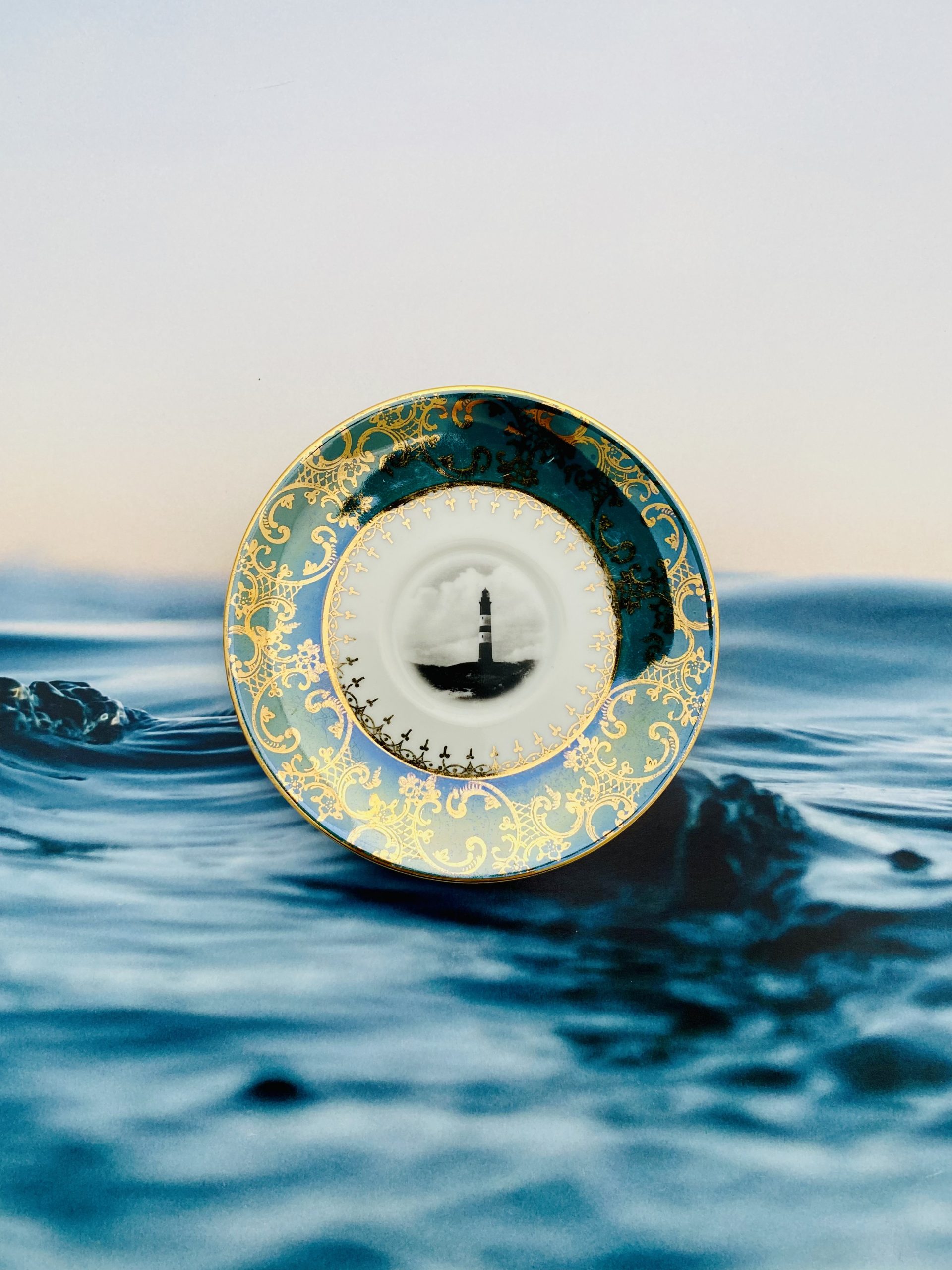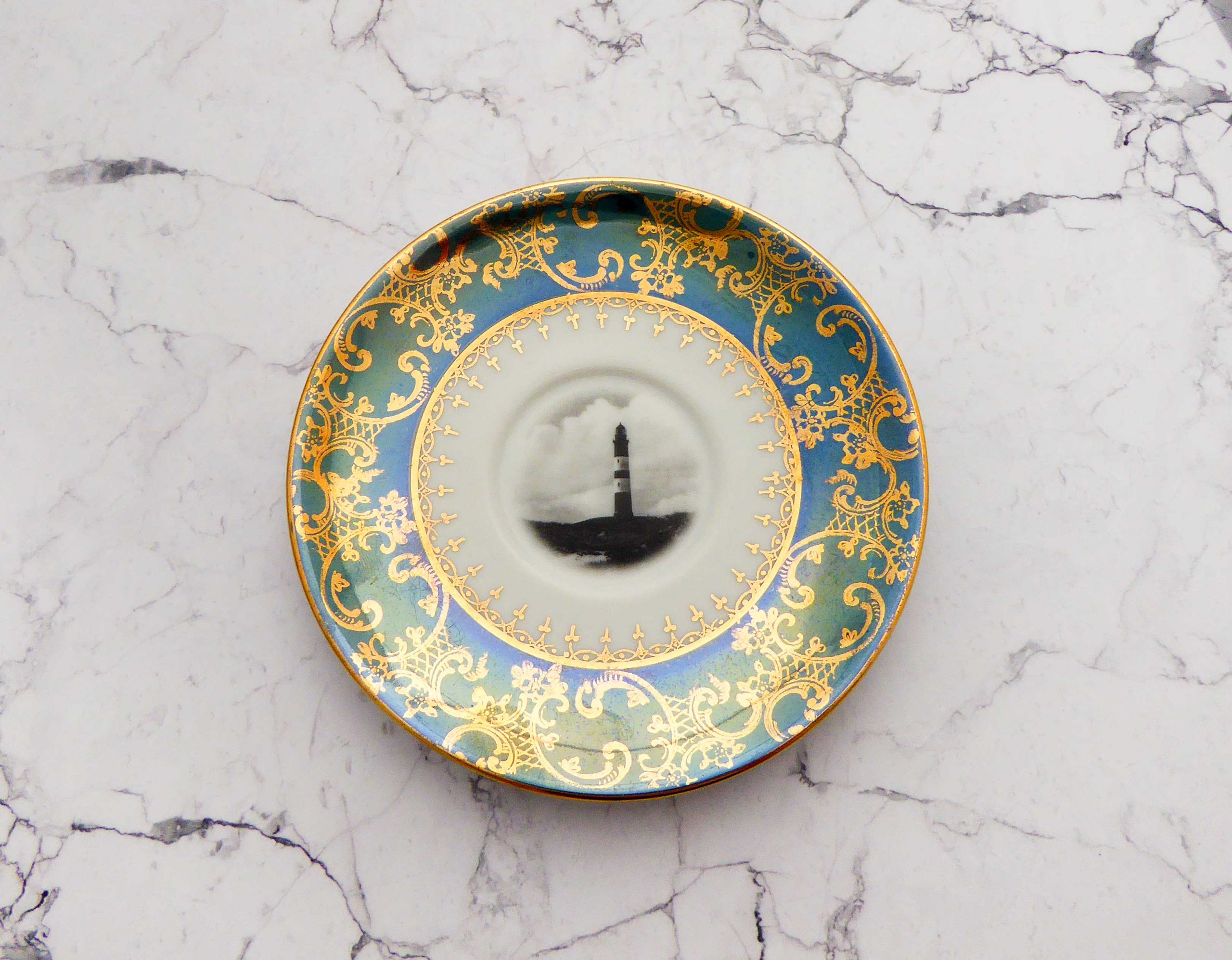 Jeder Wandeller wird handgefertigt. Dieser Wandteller hat ein besonders schönes Golddecor mit einem breiten Rand und mit unserem Leuchtturm kann er für alle Dekozwecke genutz werden.