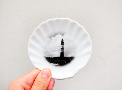 Jeder Wandteller wird handgefertigt und jeder der vintage Teller ist immer wieder ein Einzelstück. Dieser Wandteller hat ein besonders schöne Muschelform mit unserem Leuchtturm kann er für alle Dekozwecke genutz werden.