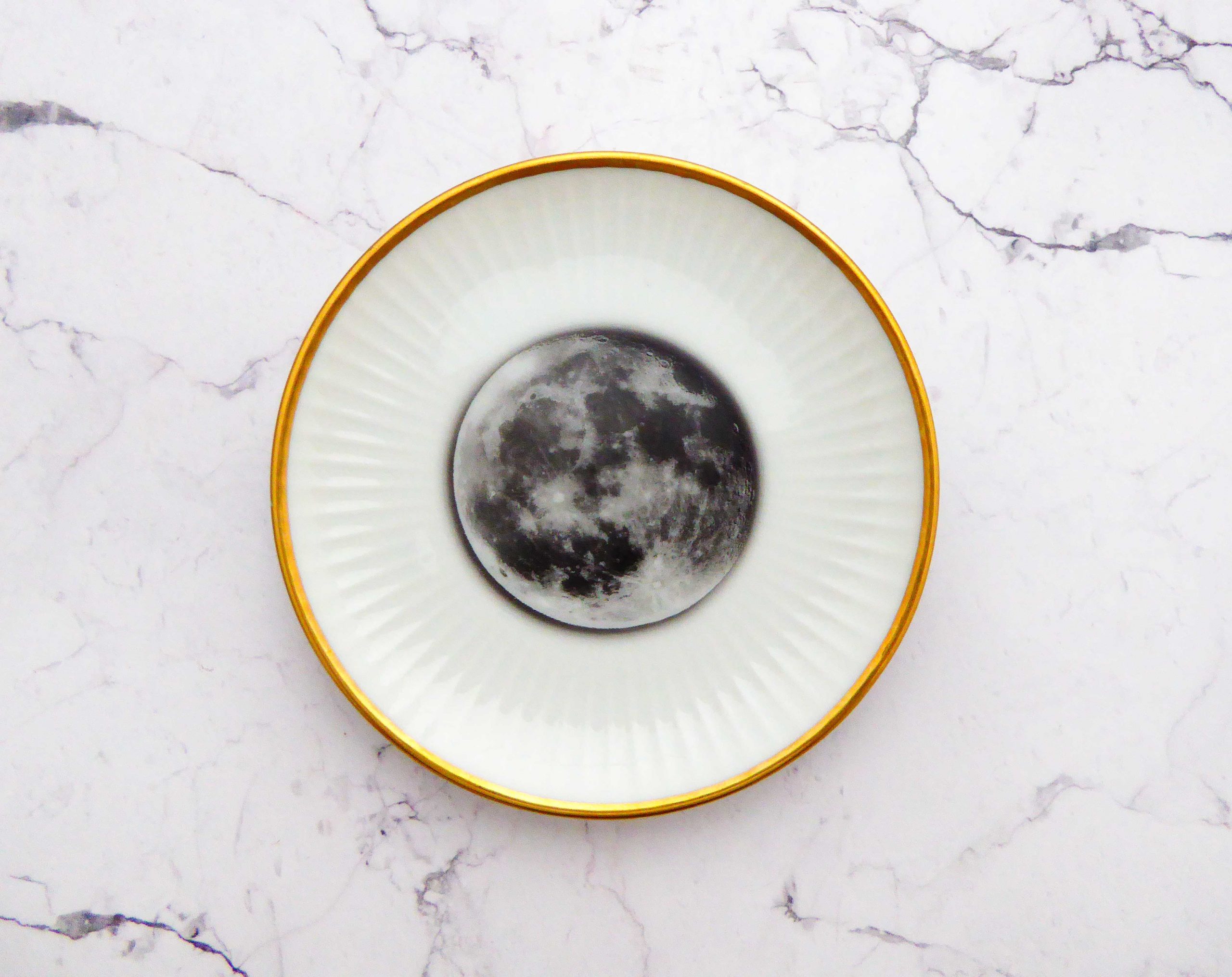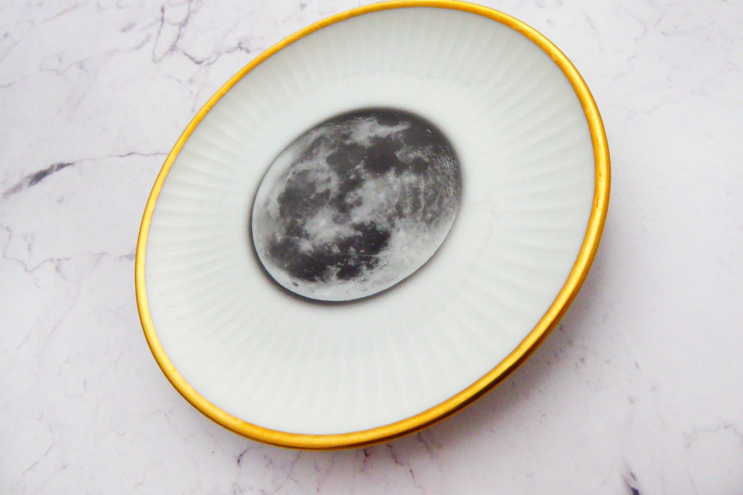 Wandteller Herr Fuchs Mond Gold mini 10cm vintage Riffel Wohnen Galaxie