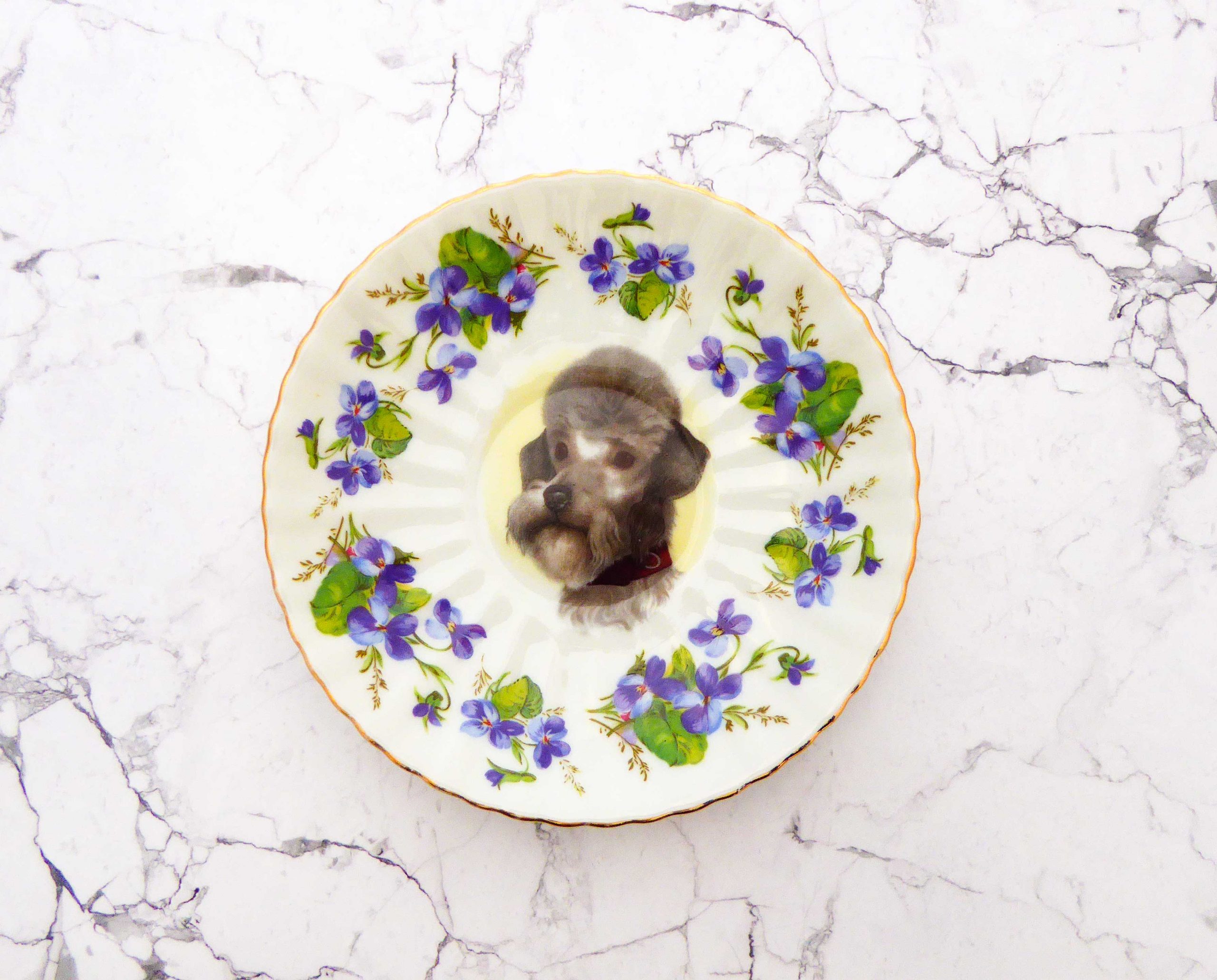 Jeder Wandteller wird handgefertigt und jeder der vintage Teller ist immer wieder ein Einzelstück. Diese besondere Wandteller hat ein schönes Pudel Decor und so kann er für alle Dekozwecke genutz werden.