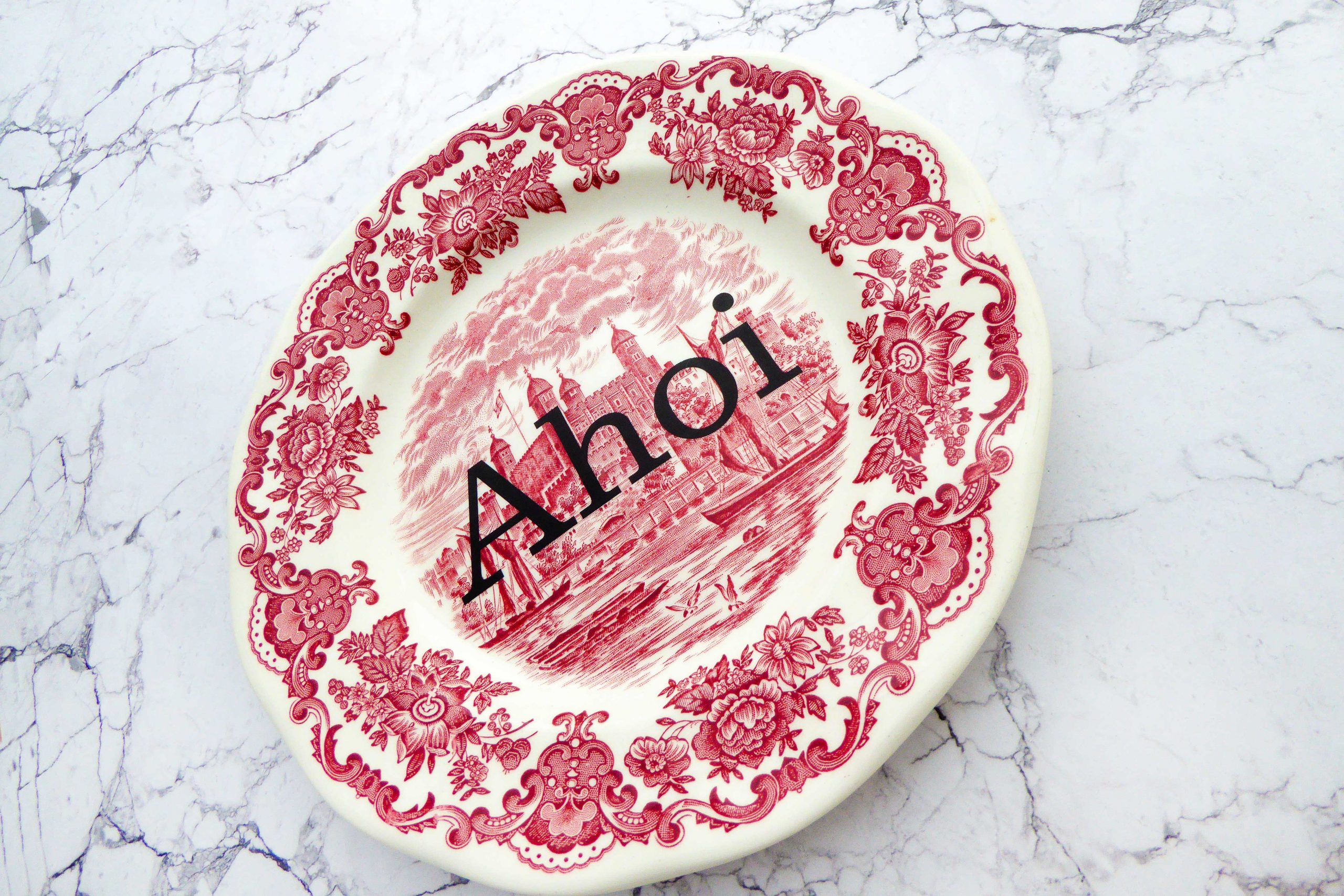 Wandteller Herr Fuchs Typo Ahoi Wohnen Weiß/Rot Wedgewood 19cm vintage