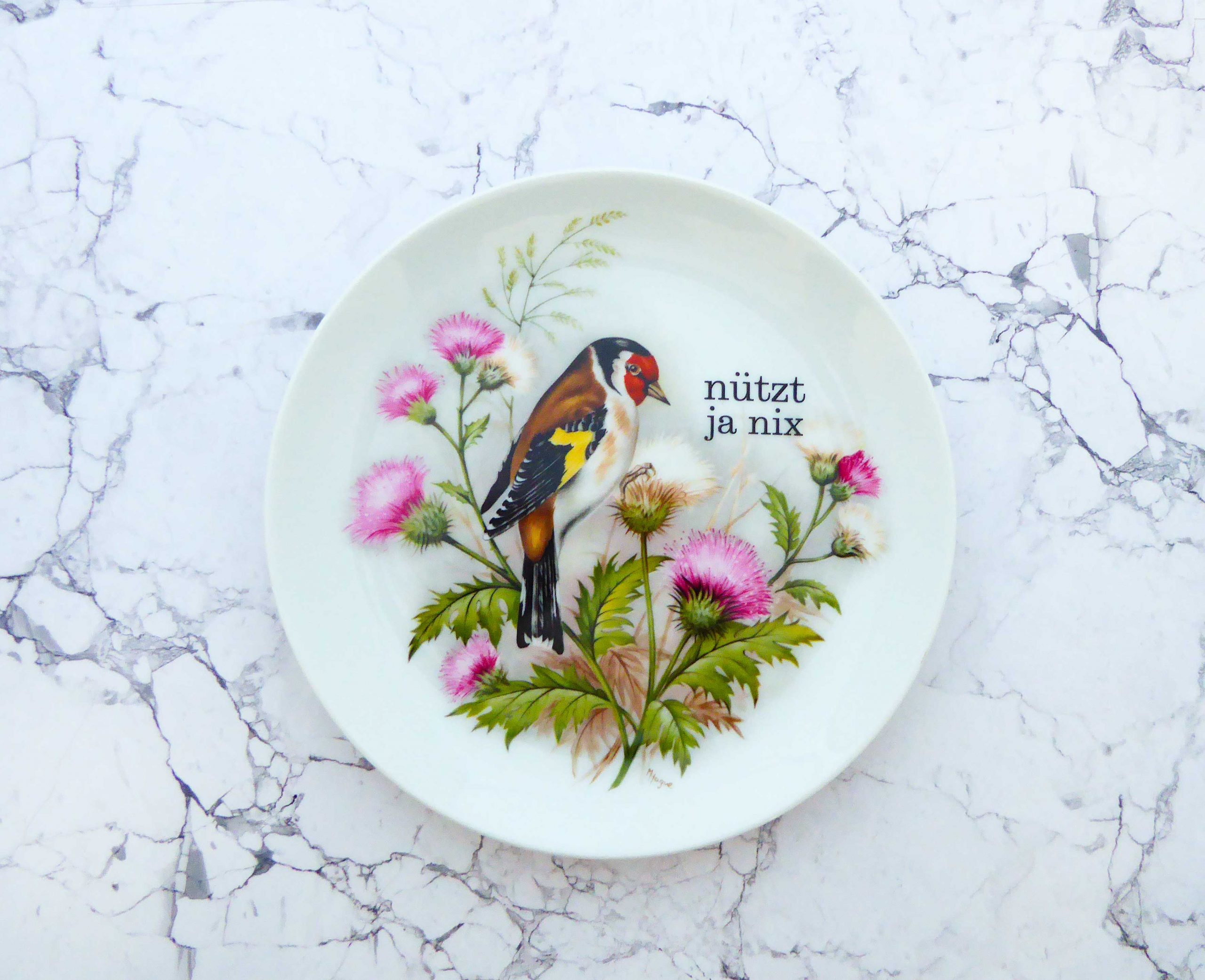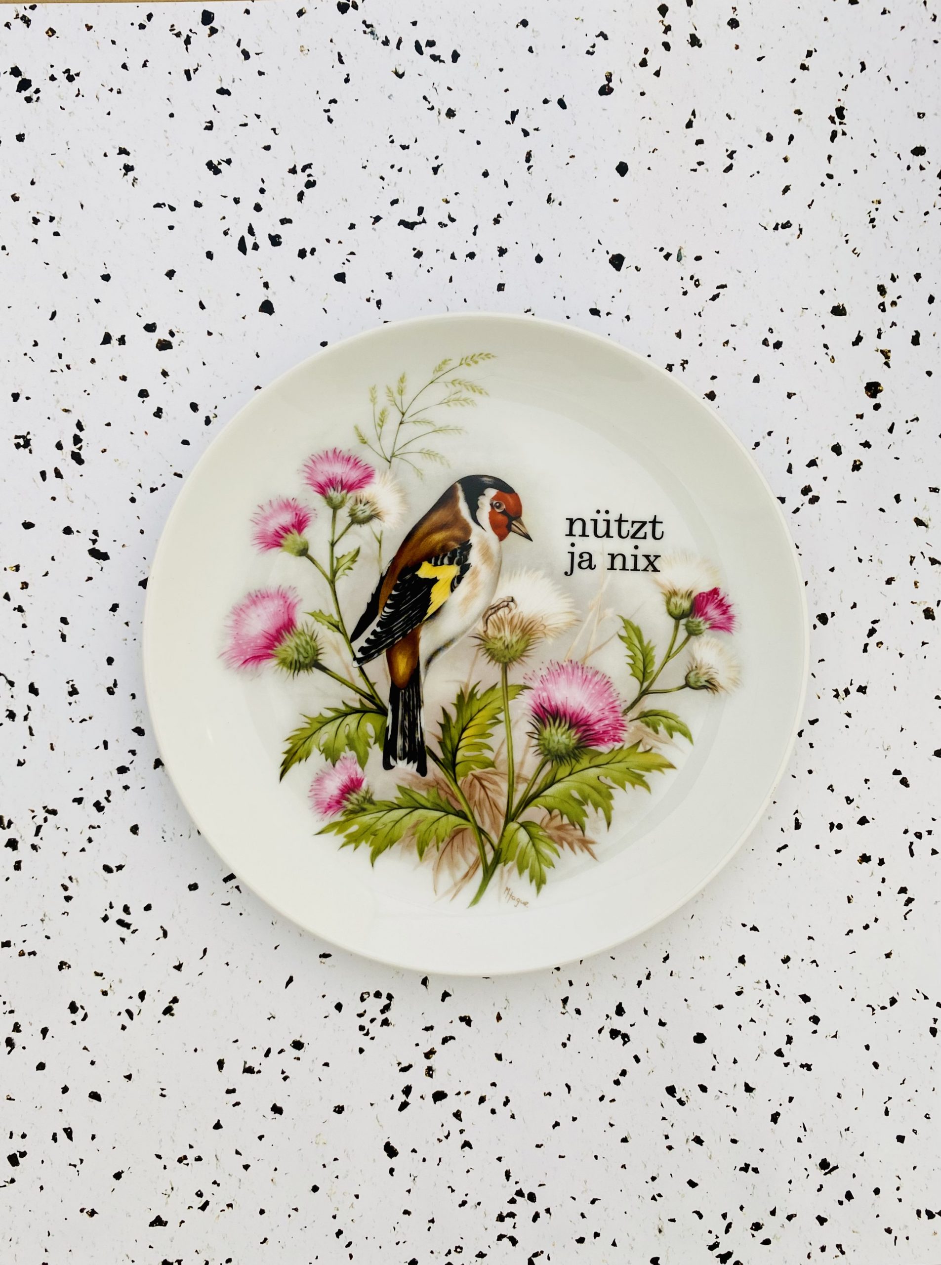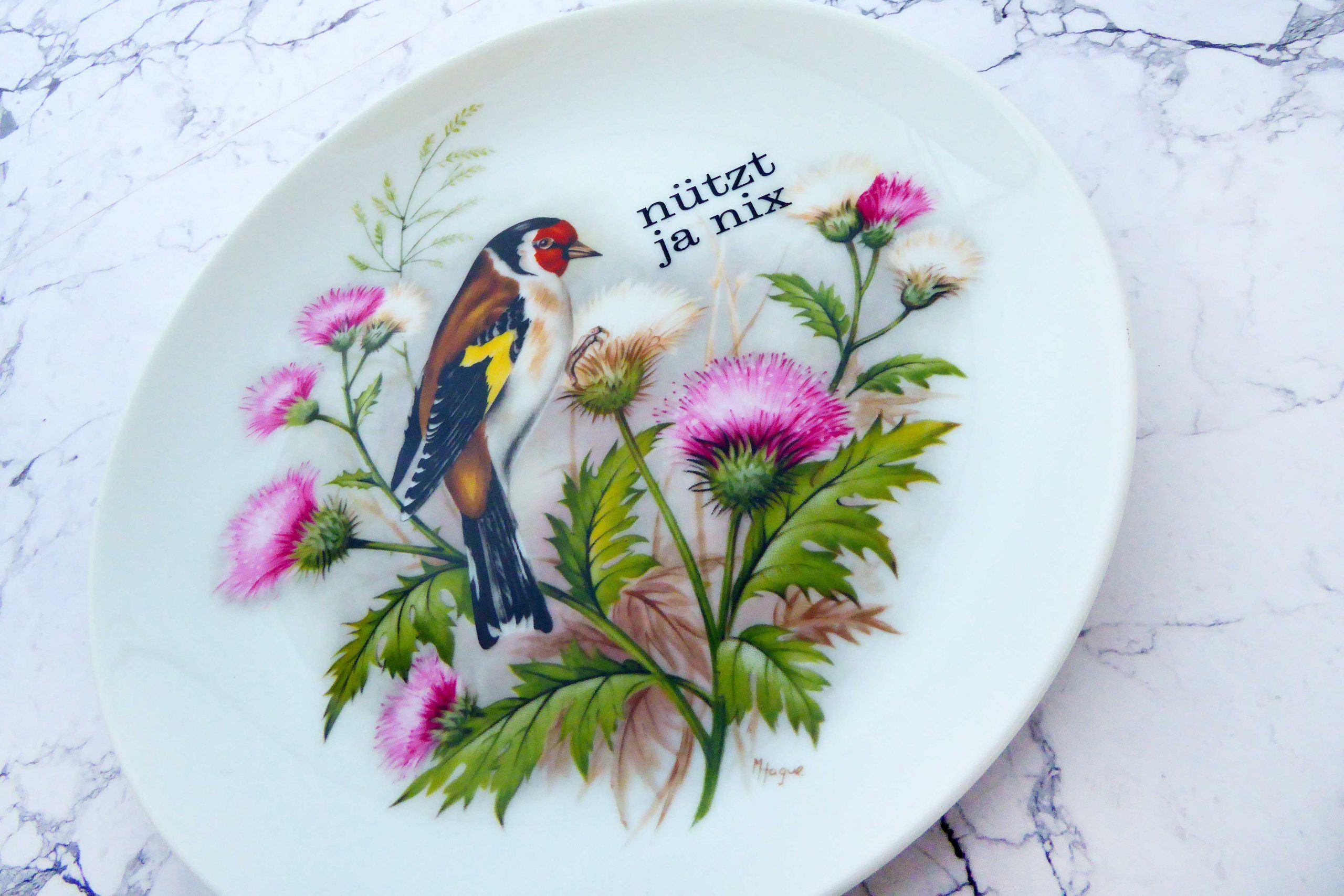 Wandteller Herr Fuchs Typo nützt ja nix 19cm Vogel Wohnen vintage Diestelfink