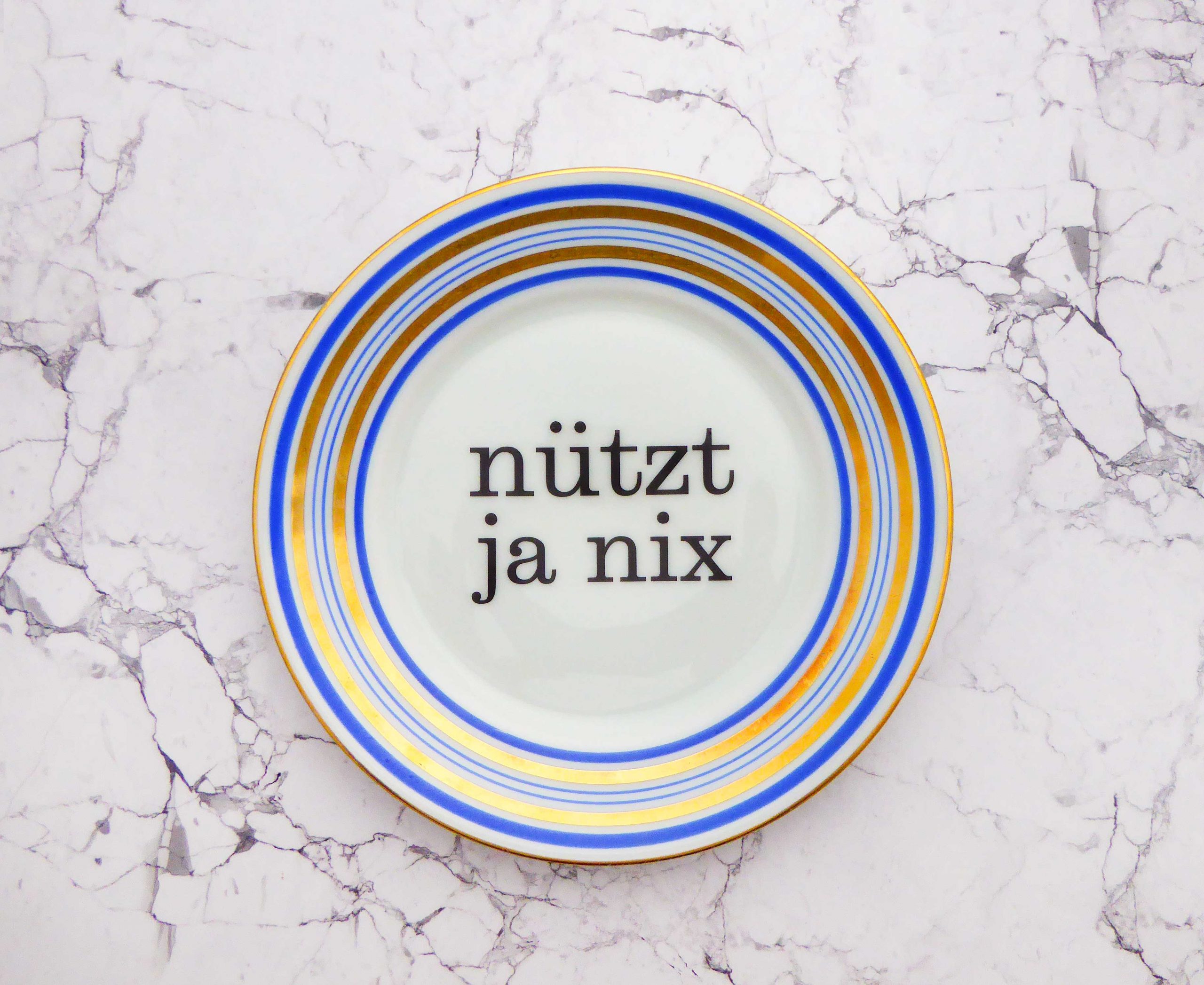 Unser Vintage Wandteller mit unserem Typo Nützt ja nix ist ein besonderes Stück für Dein Zuhause.