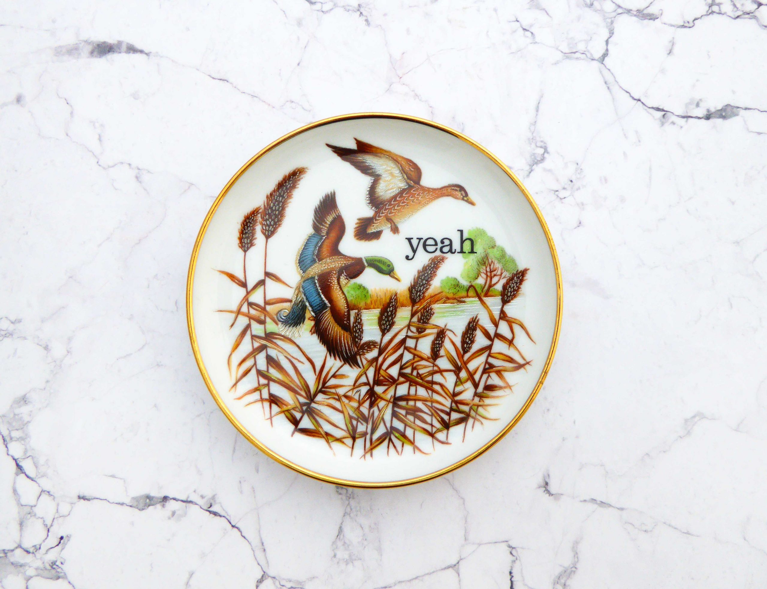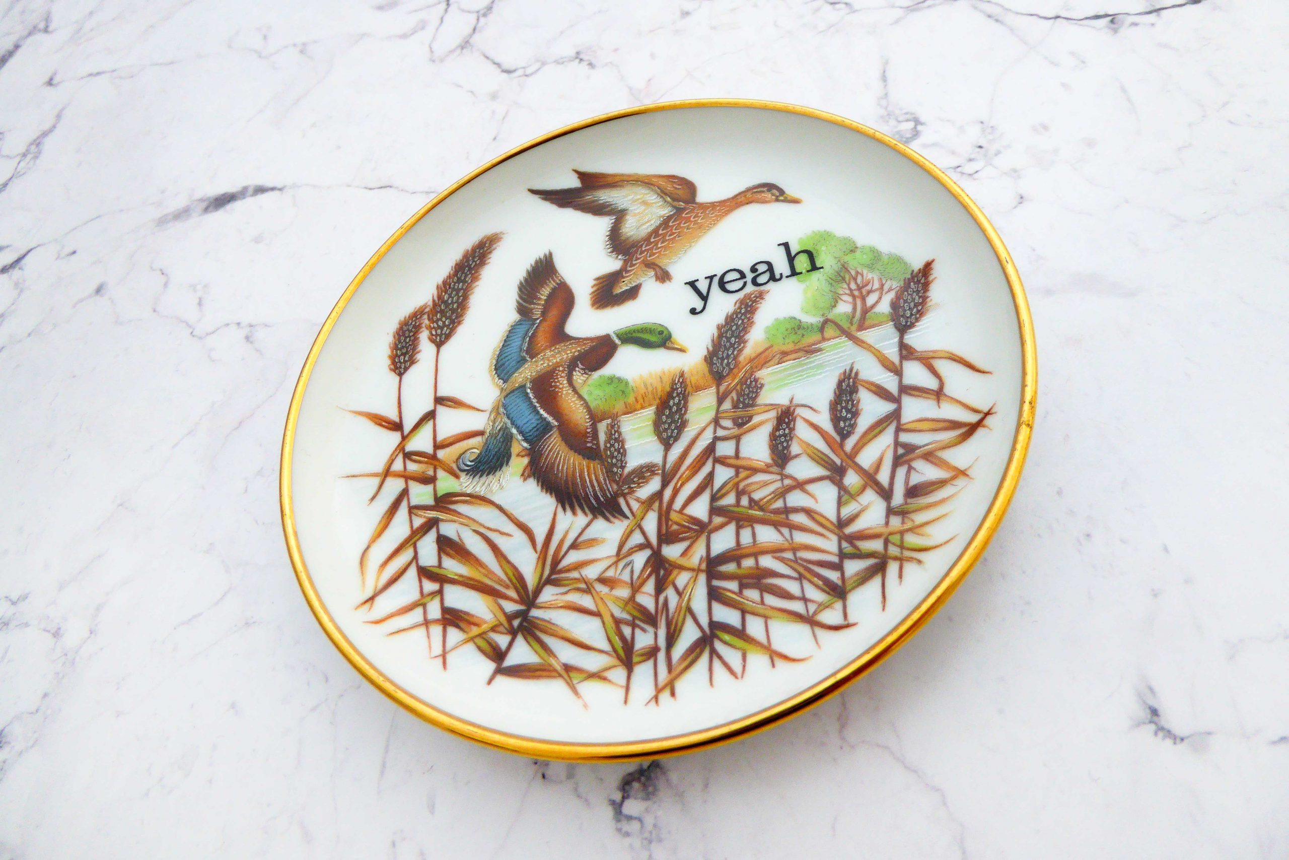 Wandteller Herr Fuchs yeah Typo Vogel mini Ente 10cm gold vintage
