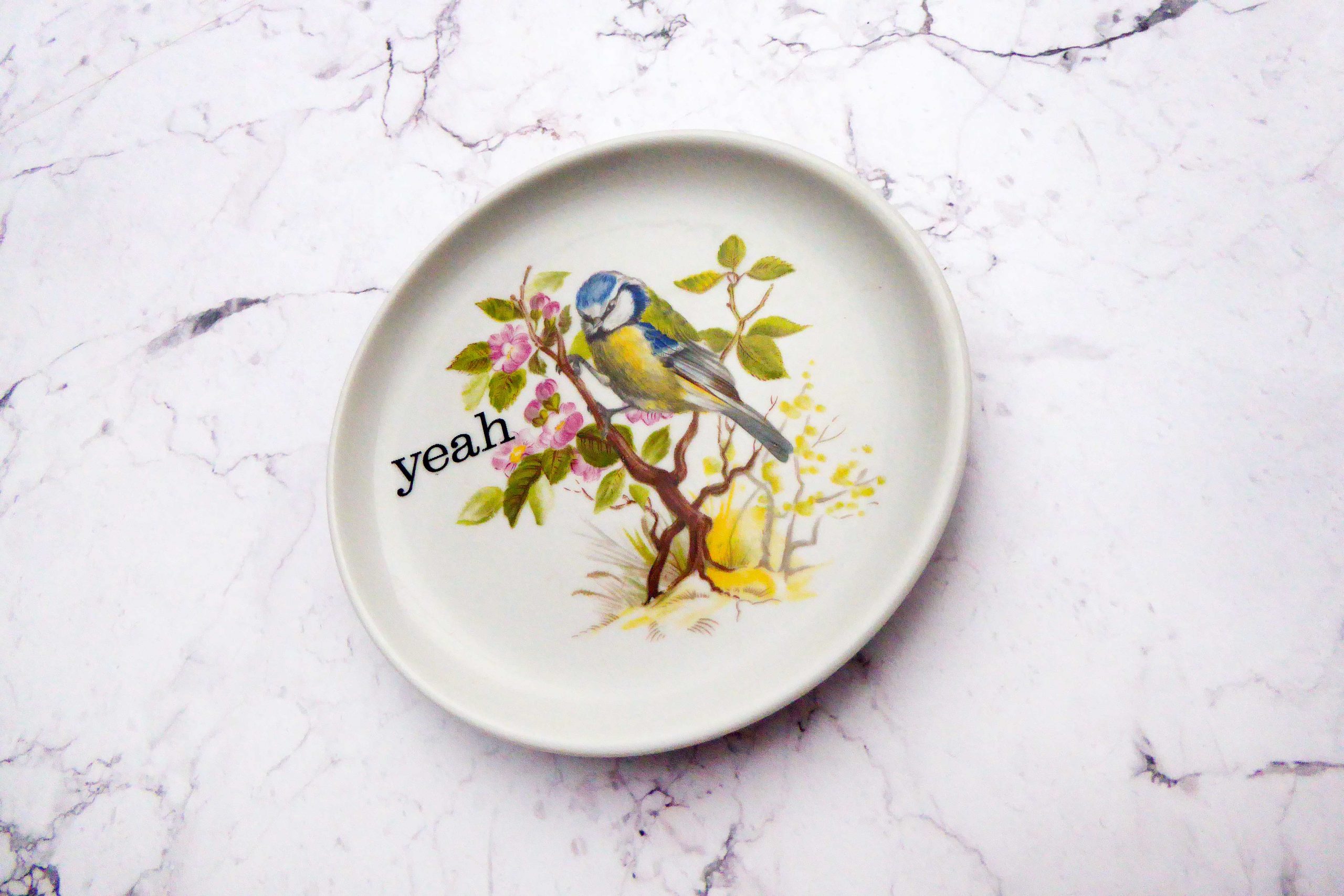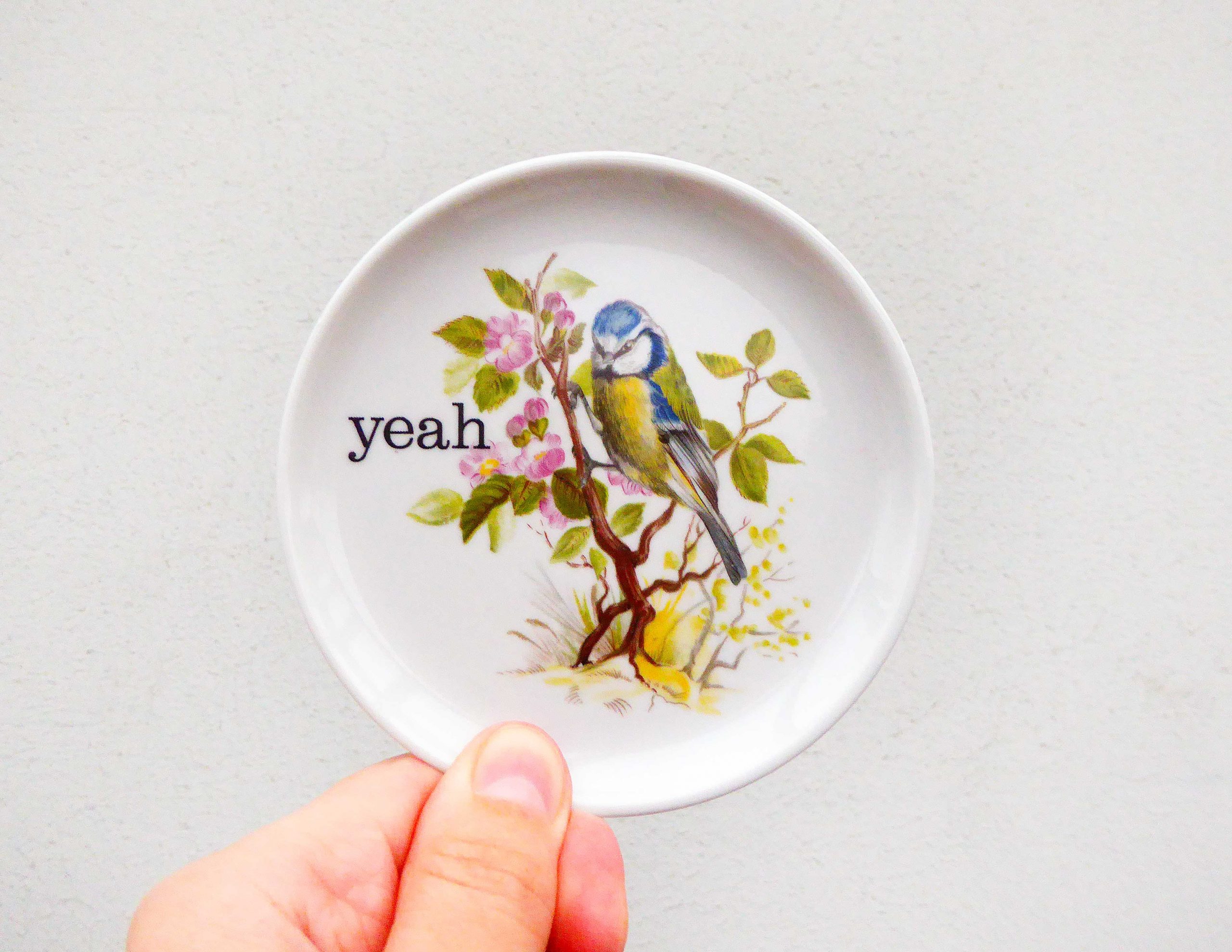 Wandteller Herr Fuchs yeah Typo Wohnen Vogel mini Blaumeise 10cm vintage
