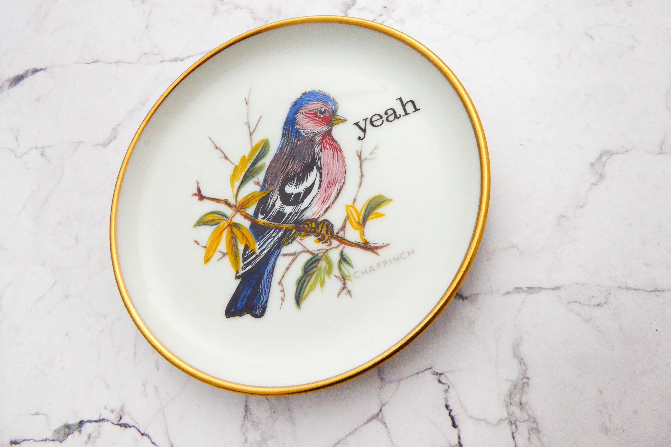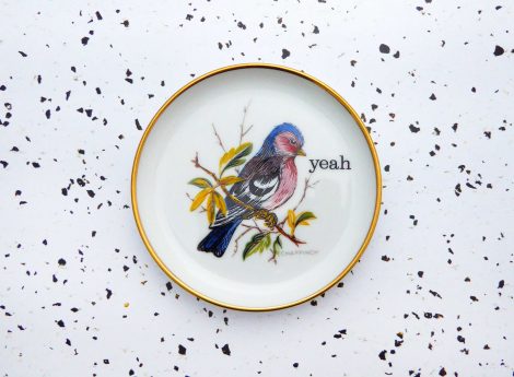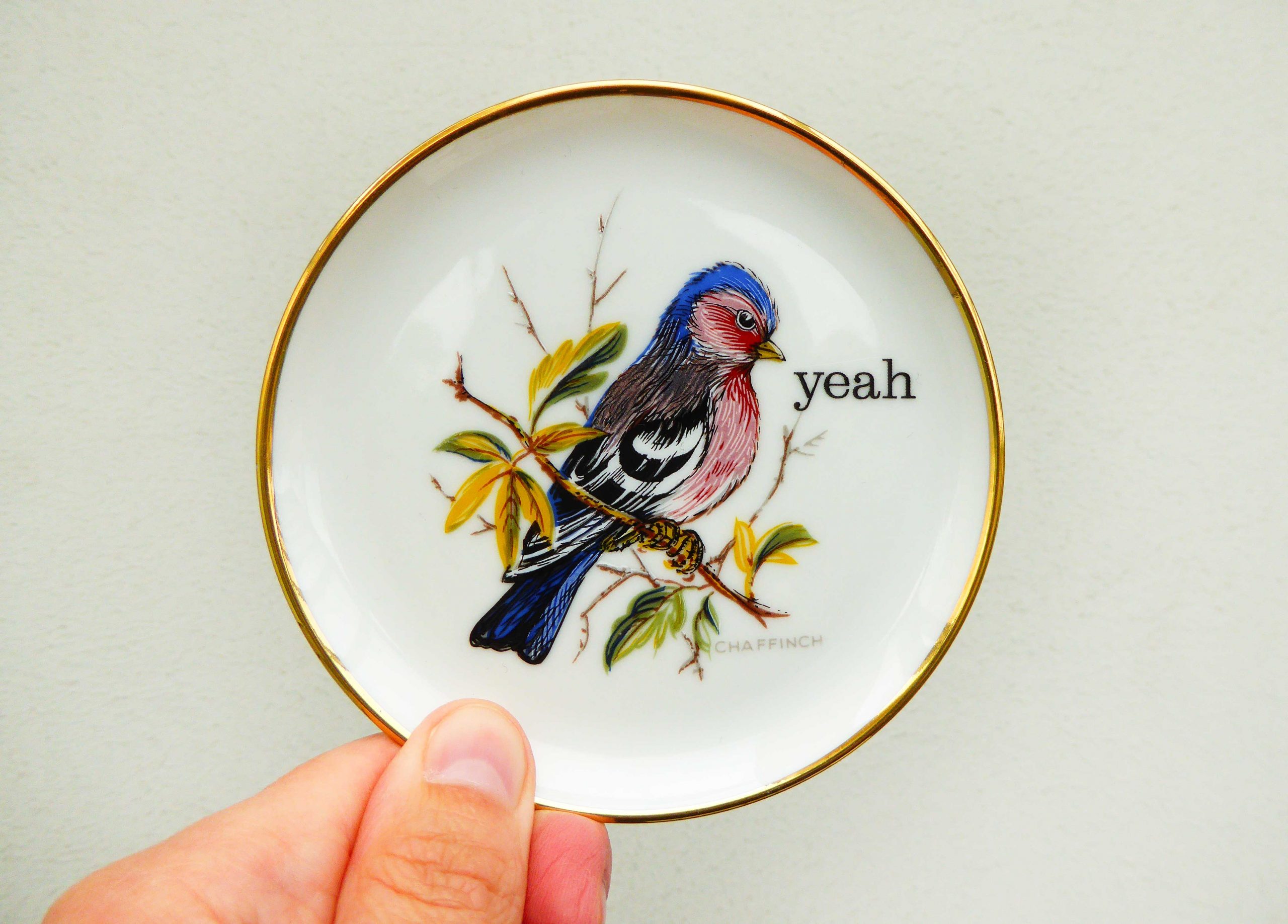 Dieser kleine Wandteller hat ein schönes Vogel /Buchfink Decor und mit unserer yeah Typo kann er für alle Dekozwecke genutz werden.