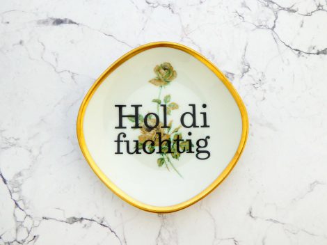 Unser Vintage Wandteller mit unsere Hol di fuchtig Typo ist ein besonderes Stück für Dein Zuhause.