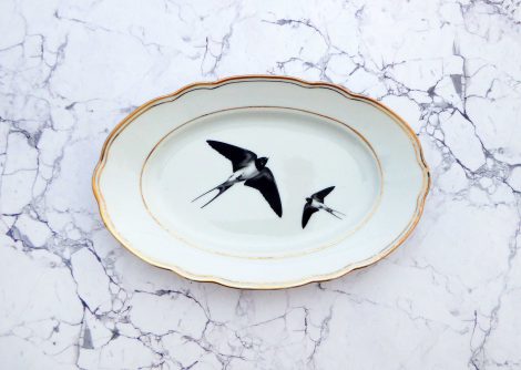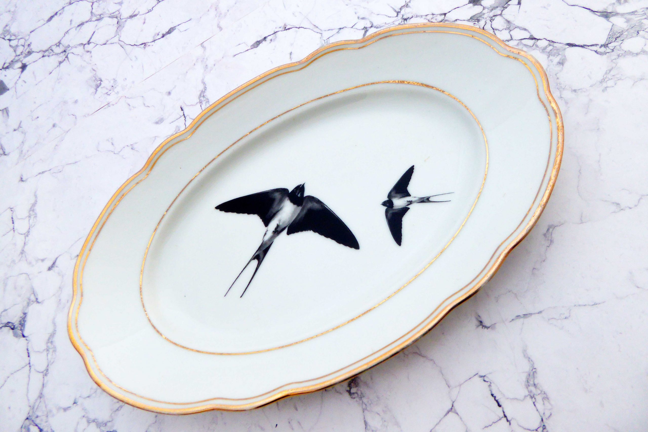 Wandteller Platte Herr Fuchs Schwalbe gold vintage 22cm Bögen wohnen
