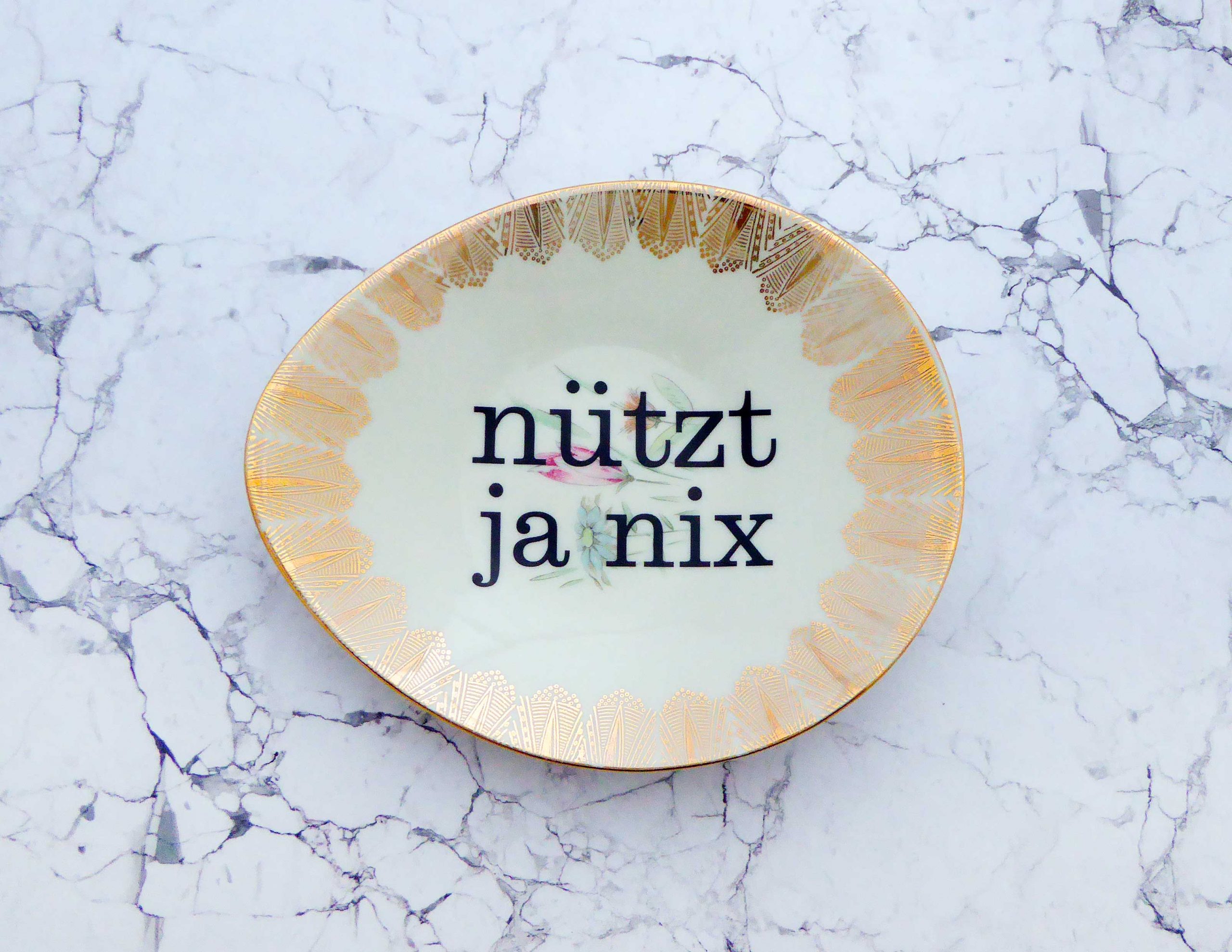 Wandplatte Vintage länglich oval unserer Typo nützt ja nix Wandteller Platte 19cm