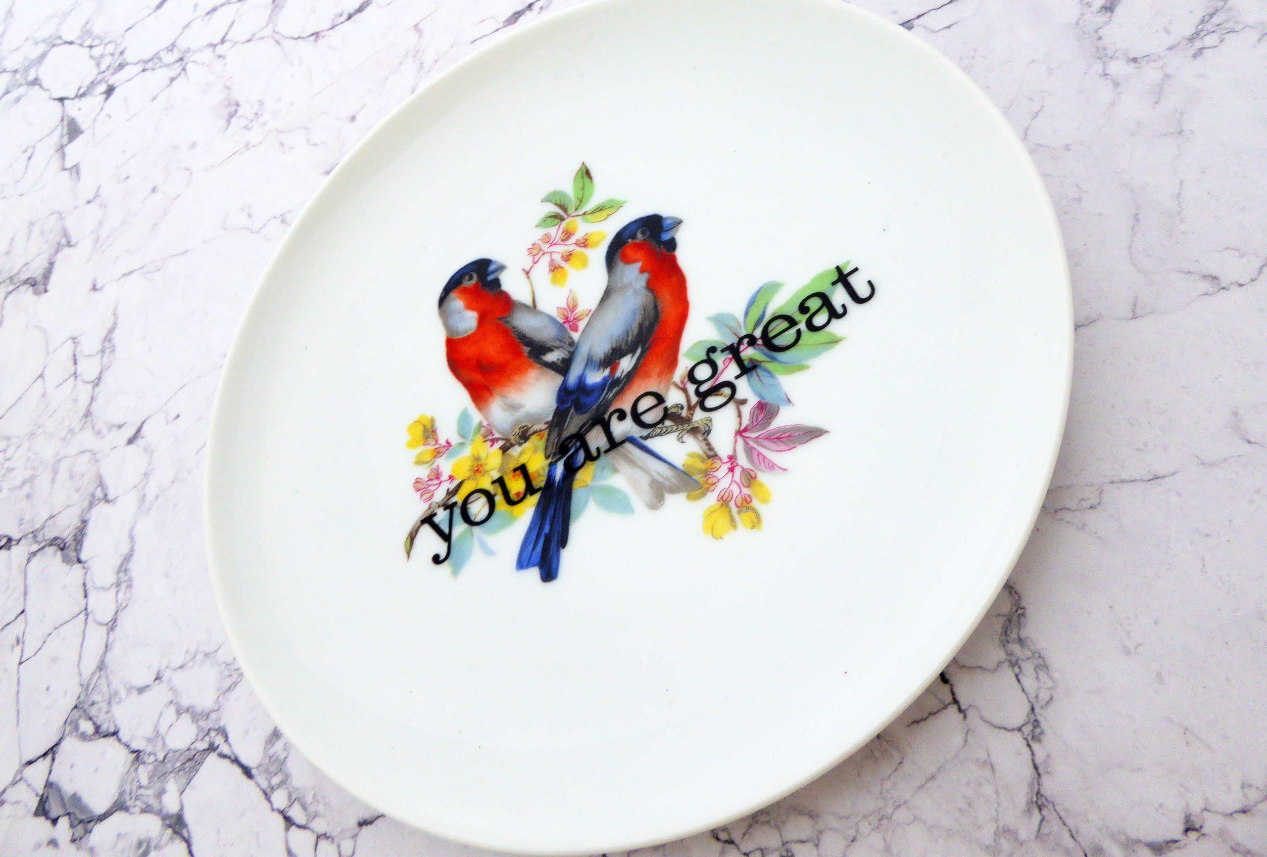 Wandteller Teller Herr Fuchs Typo you are great Vogel 19cm Dompfaffen Vögel