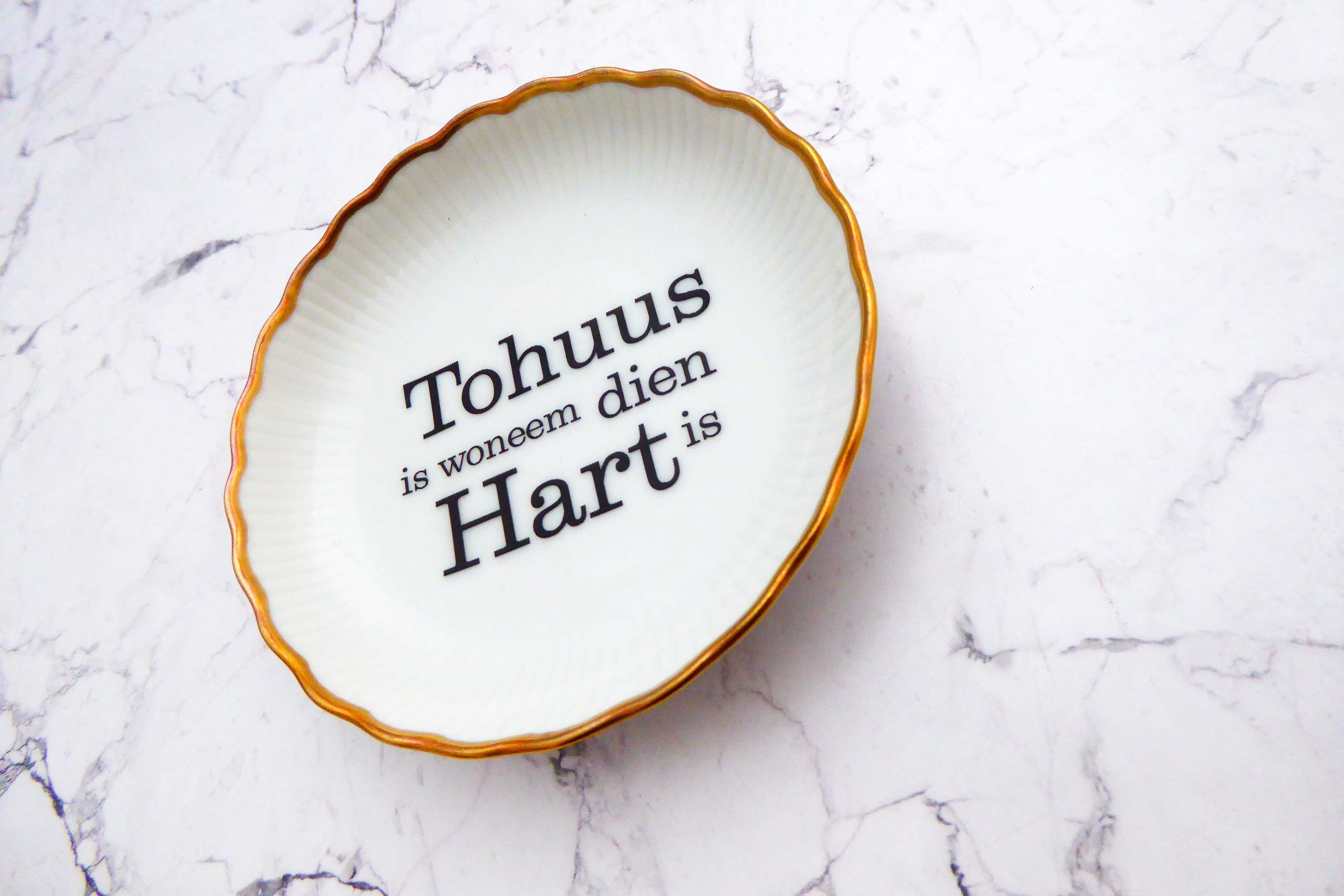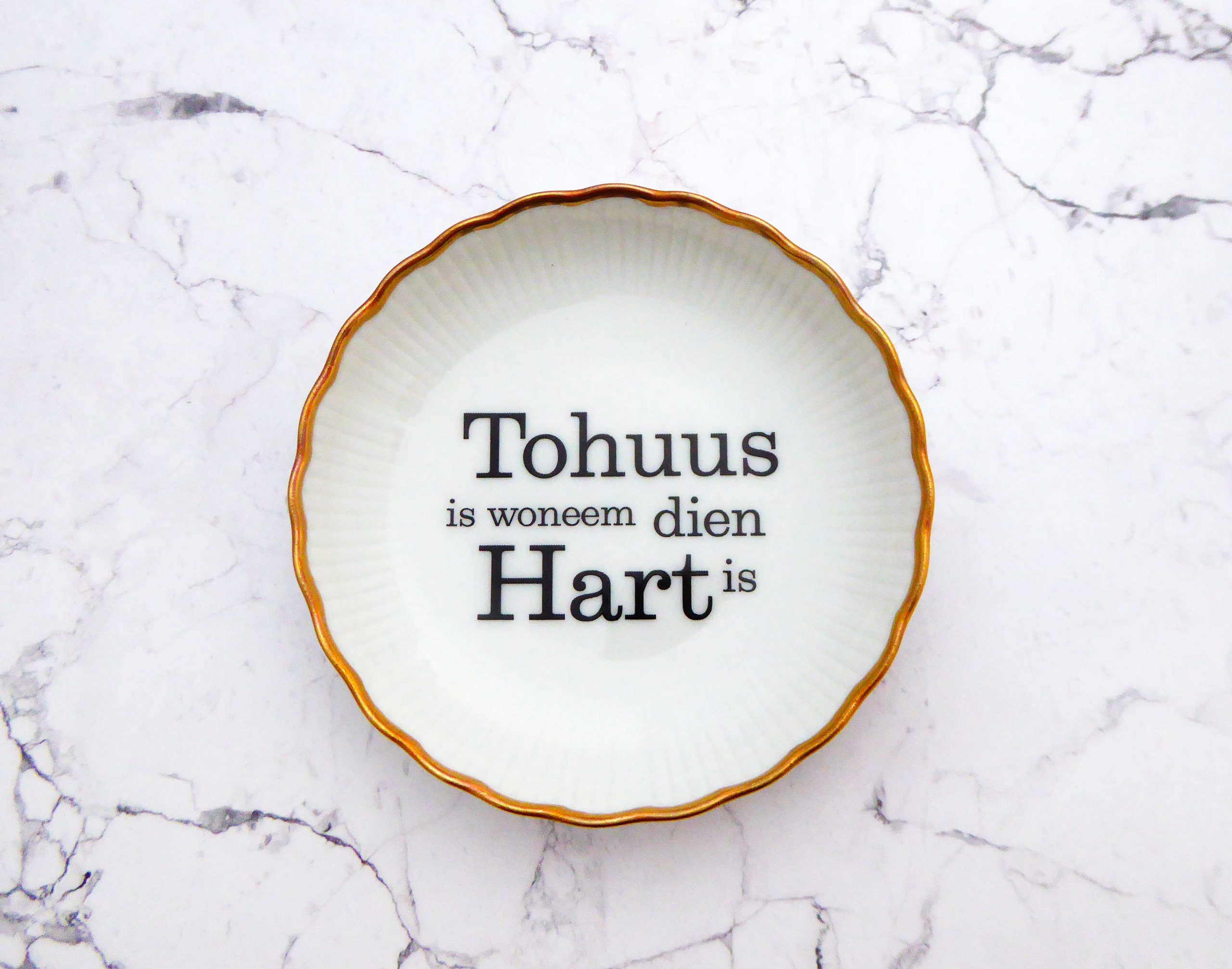 Wandteller Tohuus Typo Herr Fuchs mini 10cm gold Riffel Goldrand vintage plattdeutsch