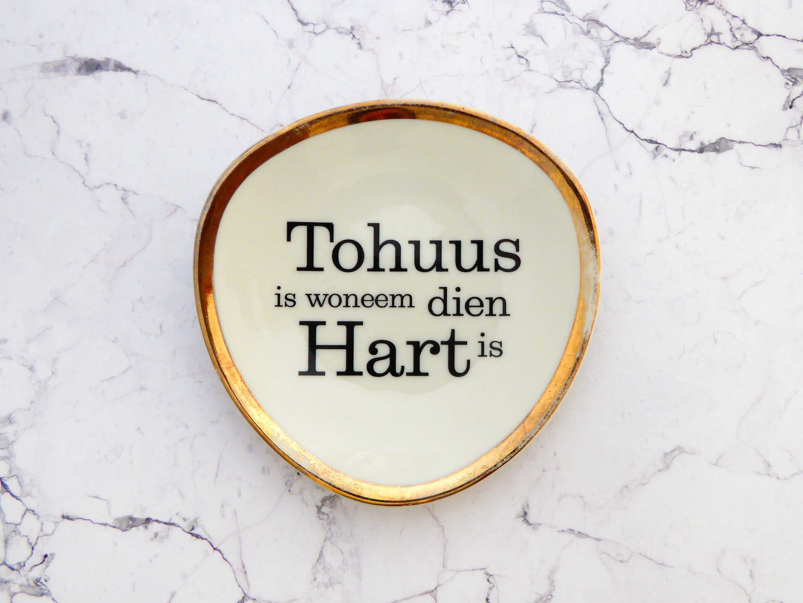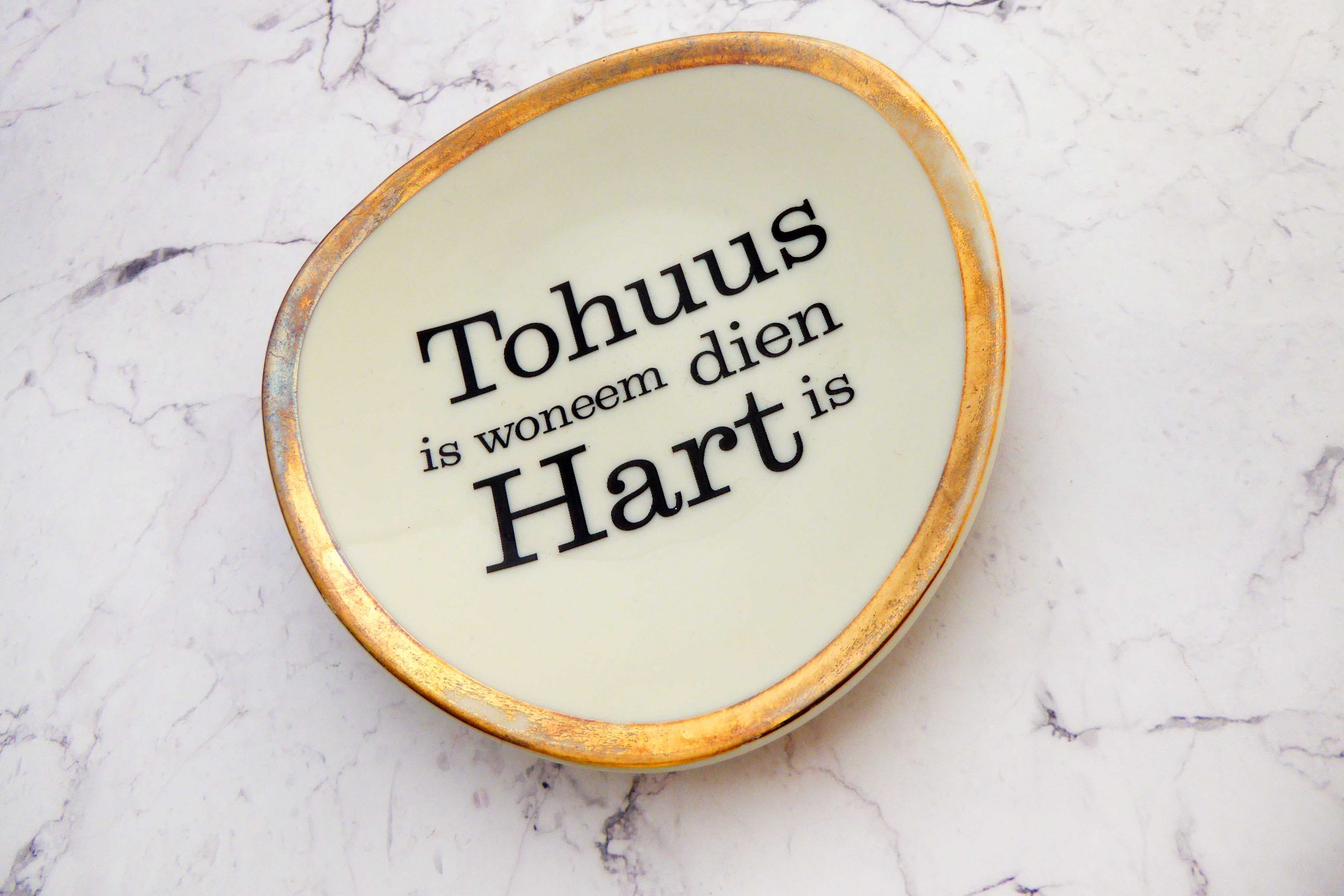 Dieser ovale Wandteller hat ein schönen Goldrand und mit unserer Tohuss Typo kann er für alle Dekozwecke genutz werden.