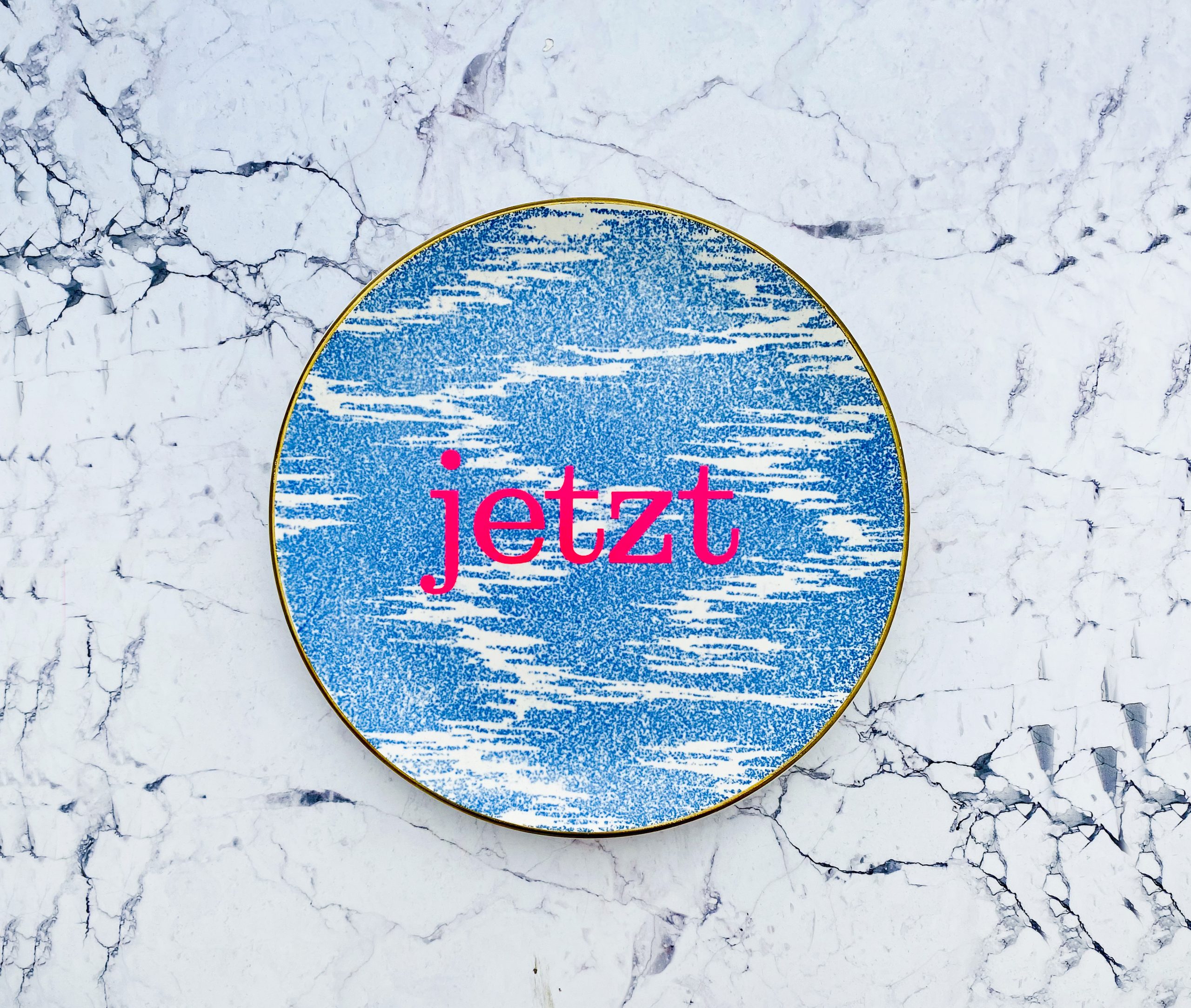Wandteller Typo jetzt vintage Herr Fuchs Teller neonpink 19cm Muster blau/weiß