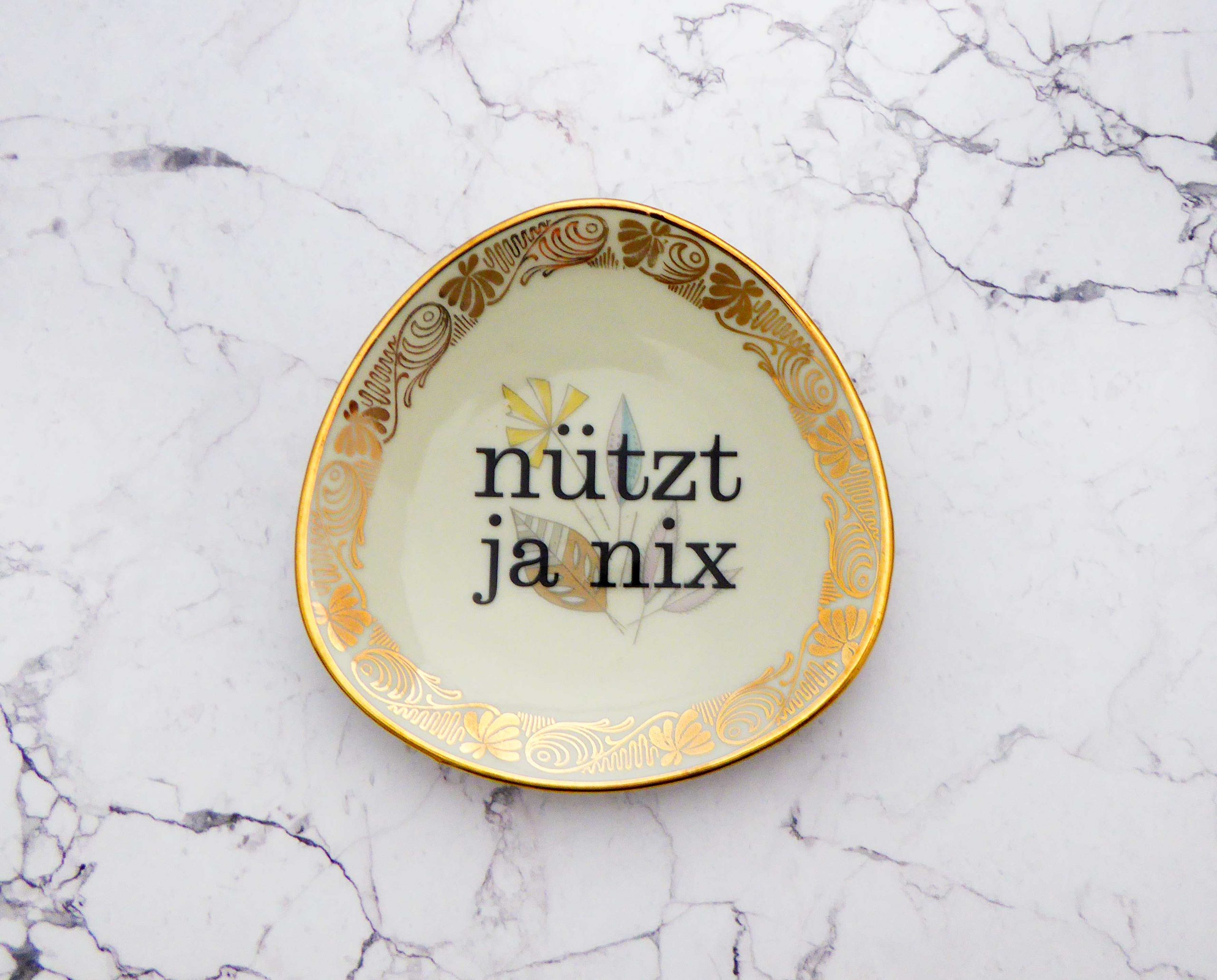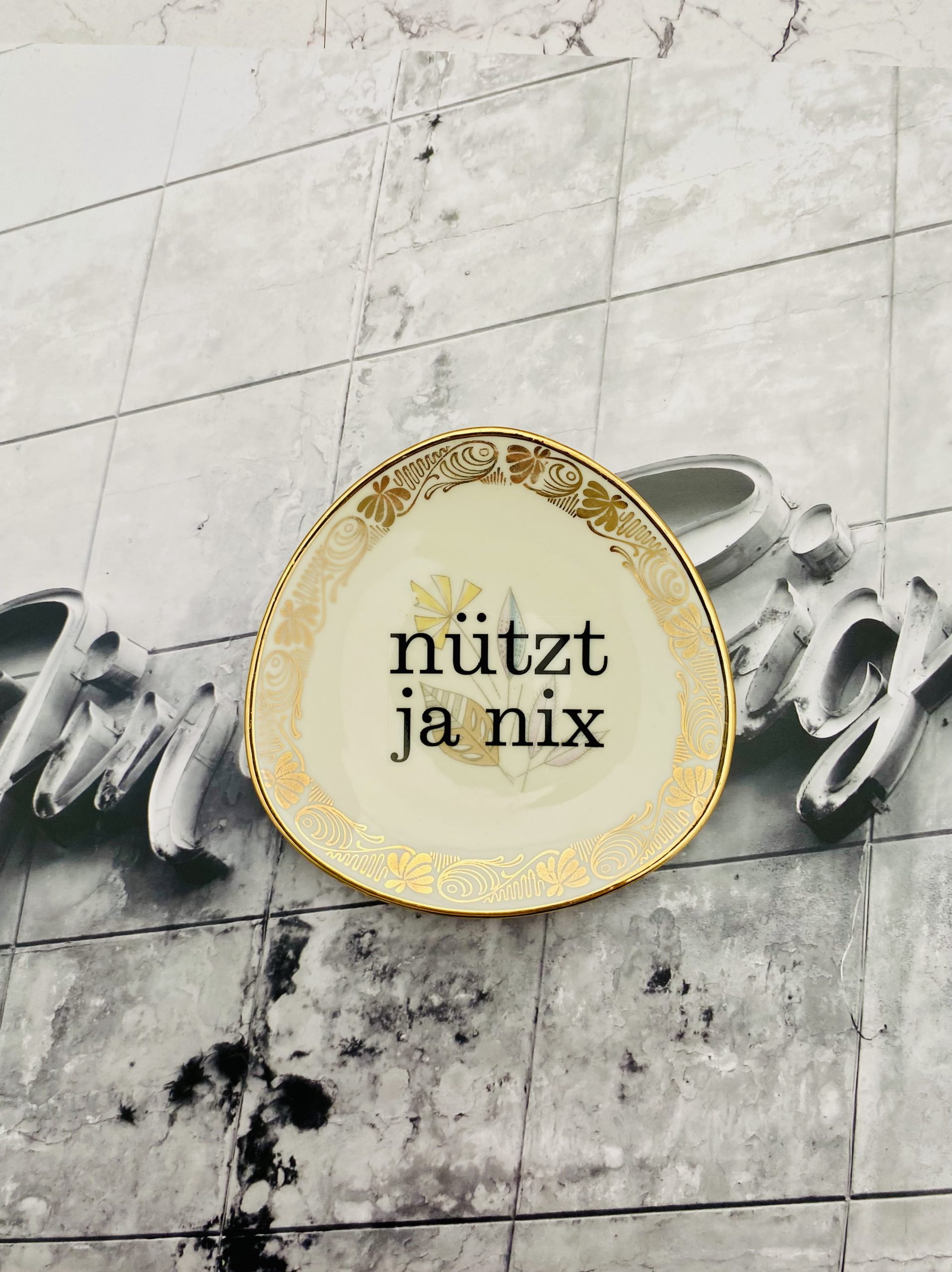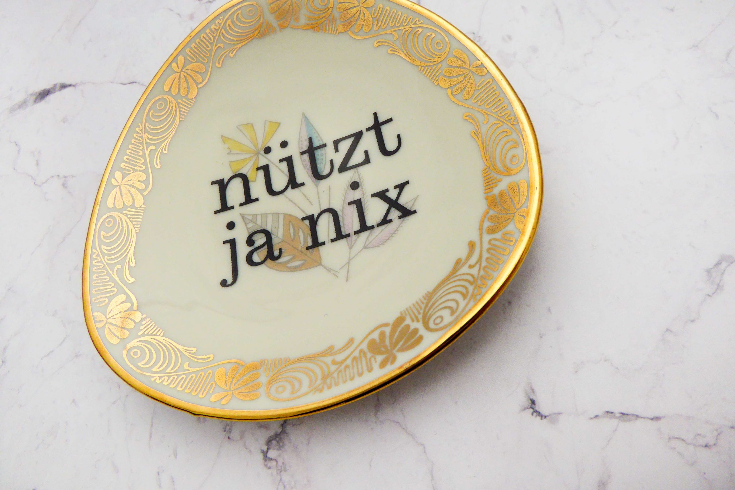 Unser vintage Wandteller mit unser nützt ja nix Typo ist ein besonderes Stück für Dein Zuhause.