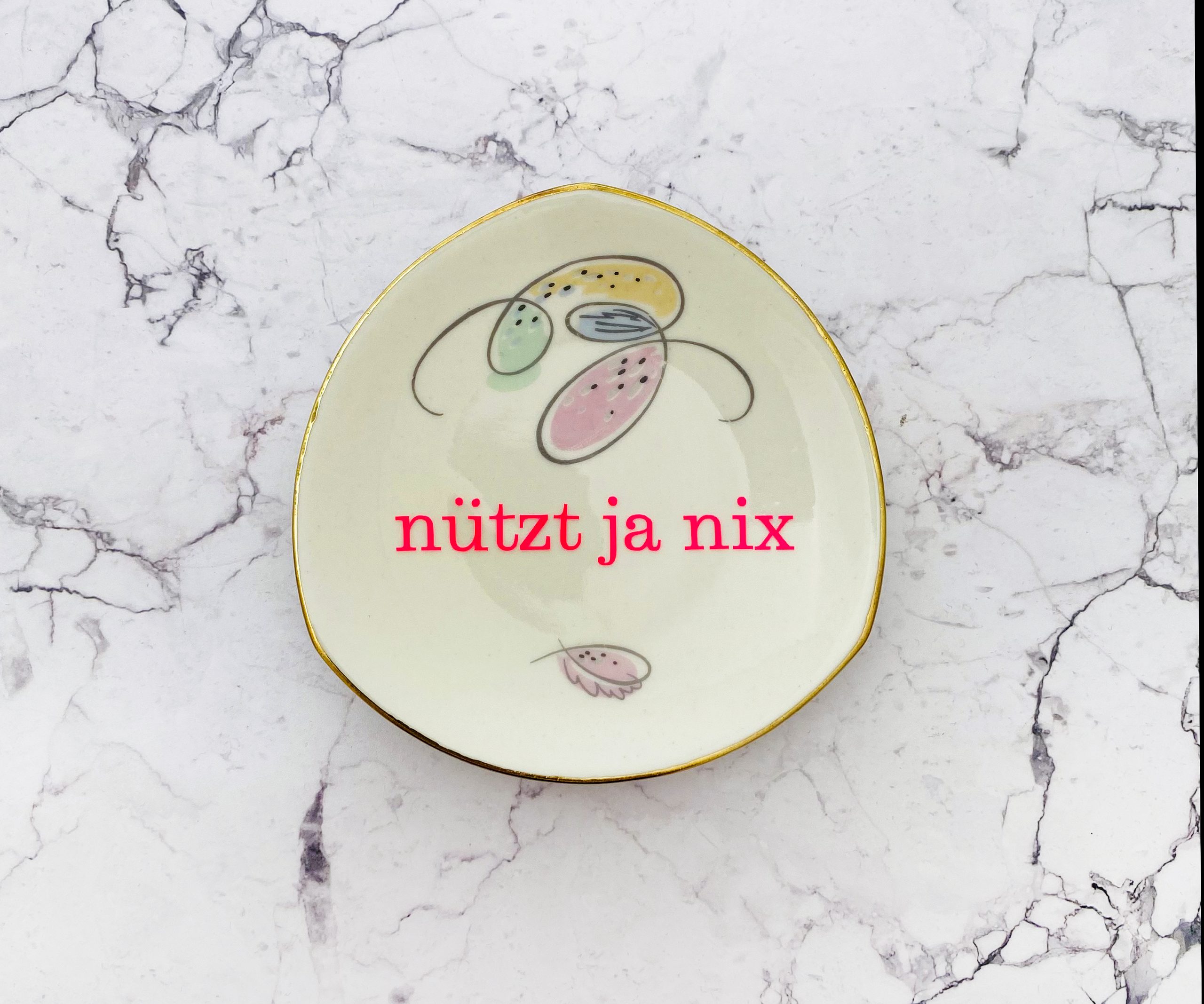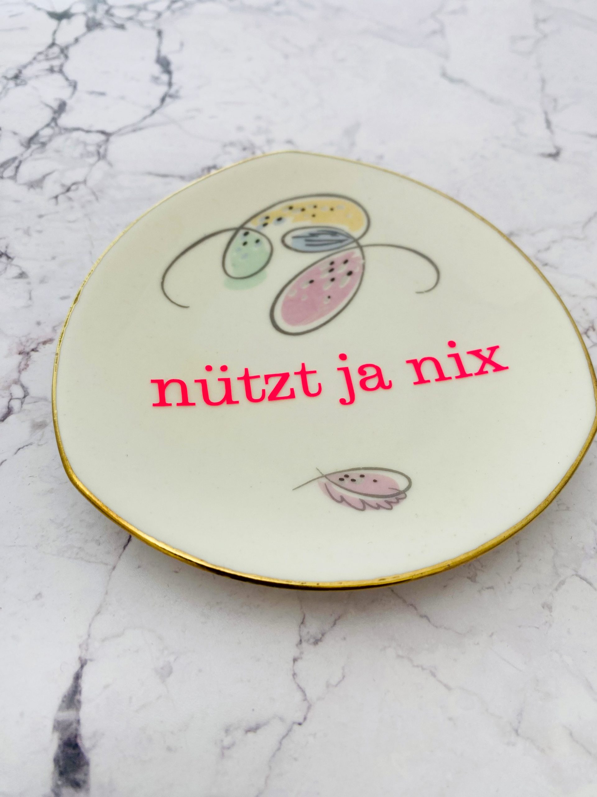 Unser Vintage Wandteller mit unserer nützt ja nix Typo ist ein besonderes Stück für Dein Zuhause.