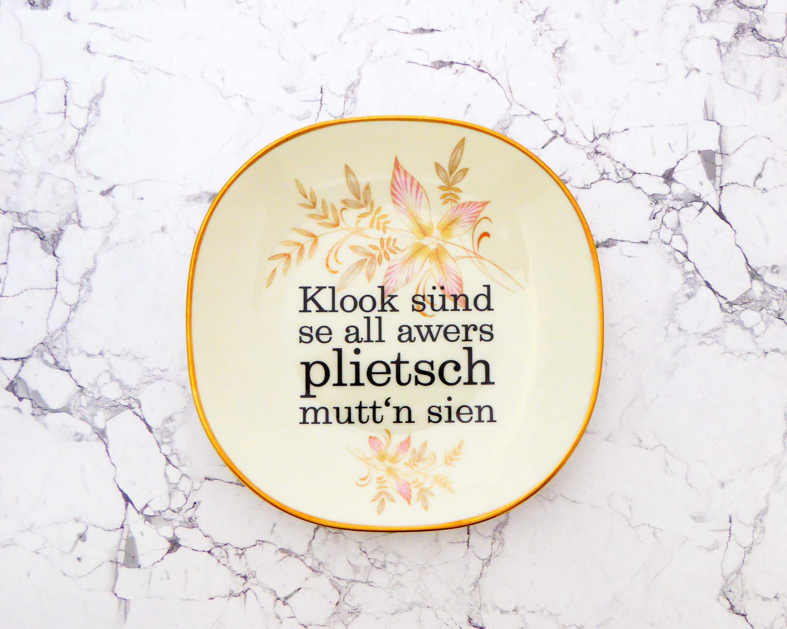 Unser Vintage Wandteller mit unserer Typo plietsch ist ein besonderes Stück für Deine Wand.