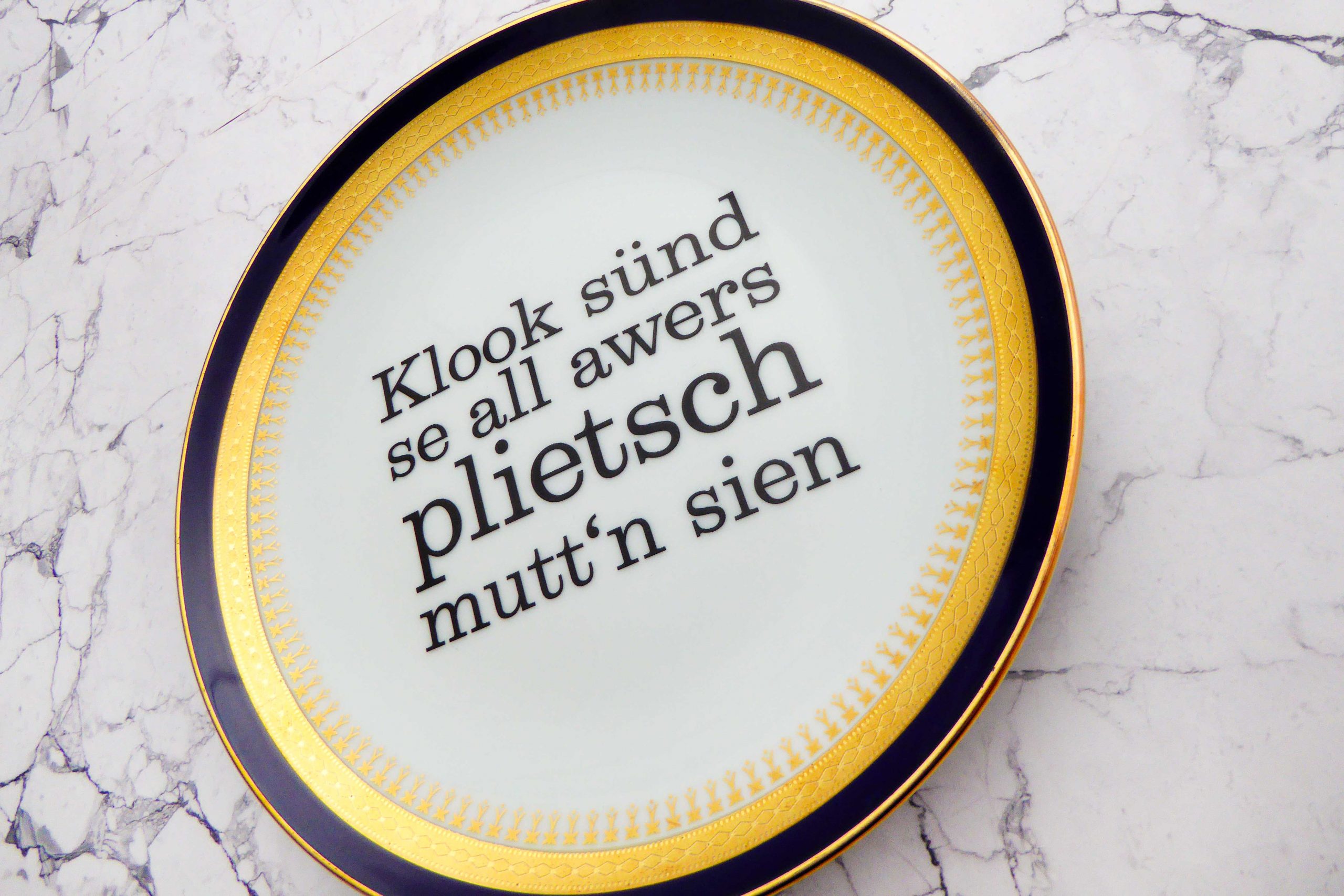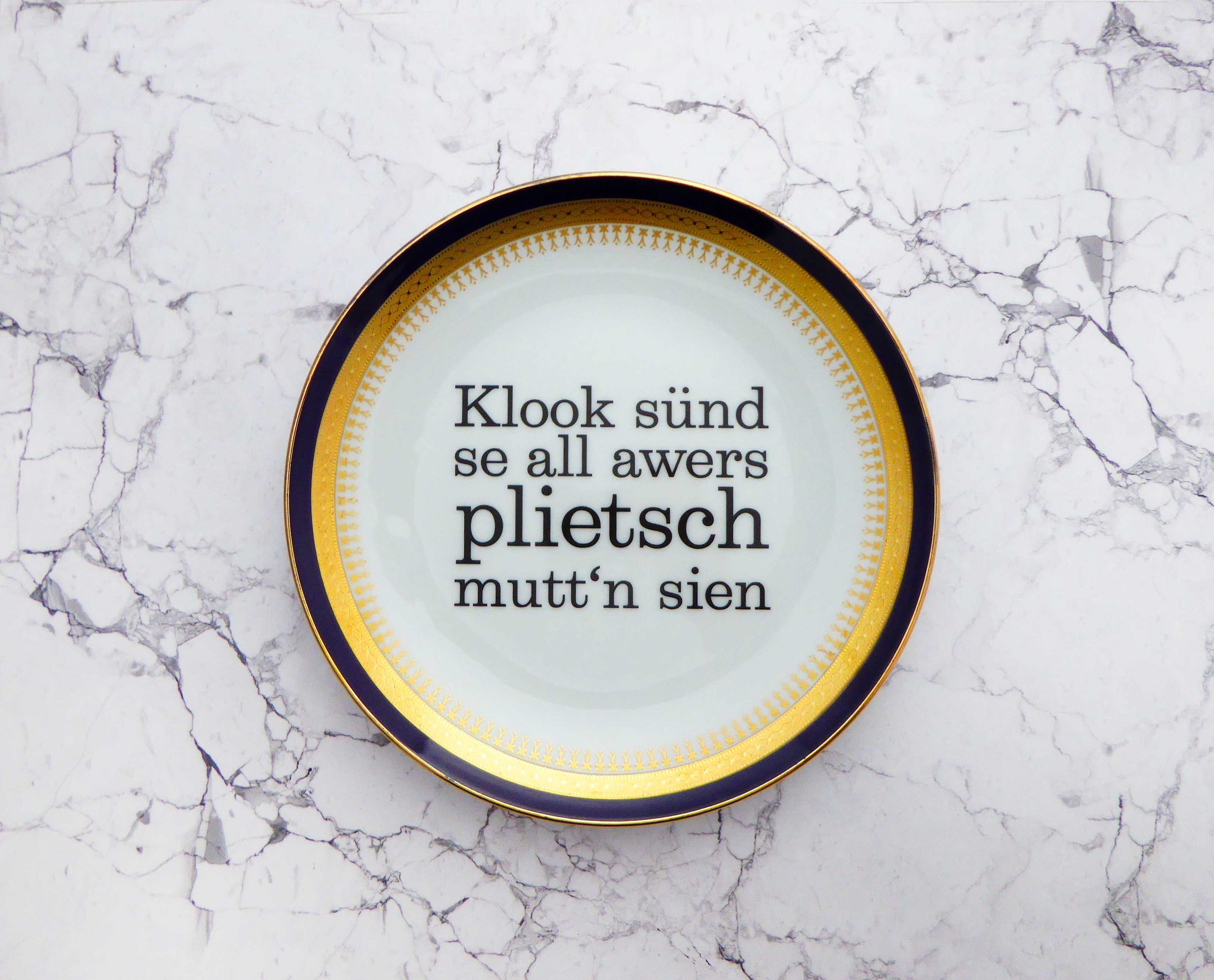 Unser Vintage Wandteller mit unserer Typo plietsch ist ein besonderes Stück für Deine Wand.