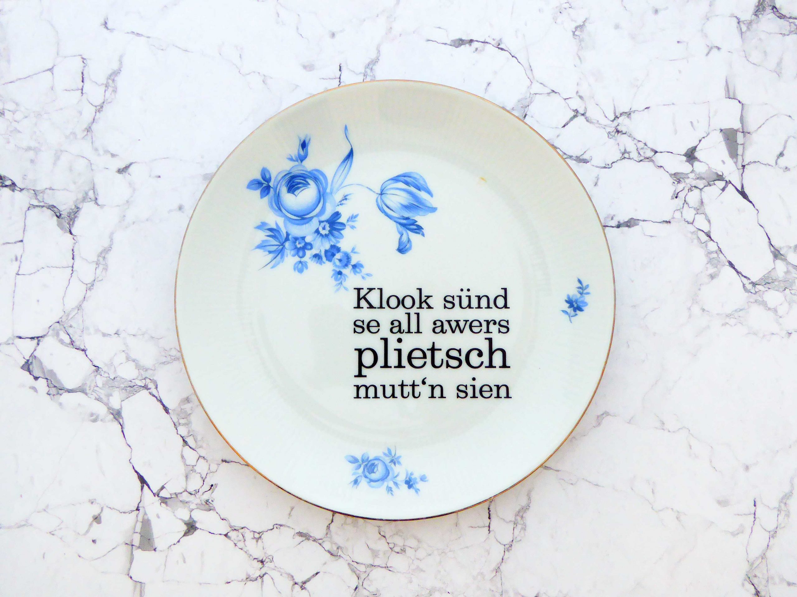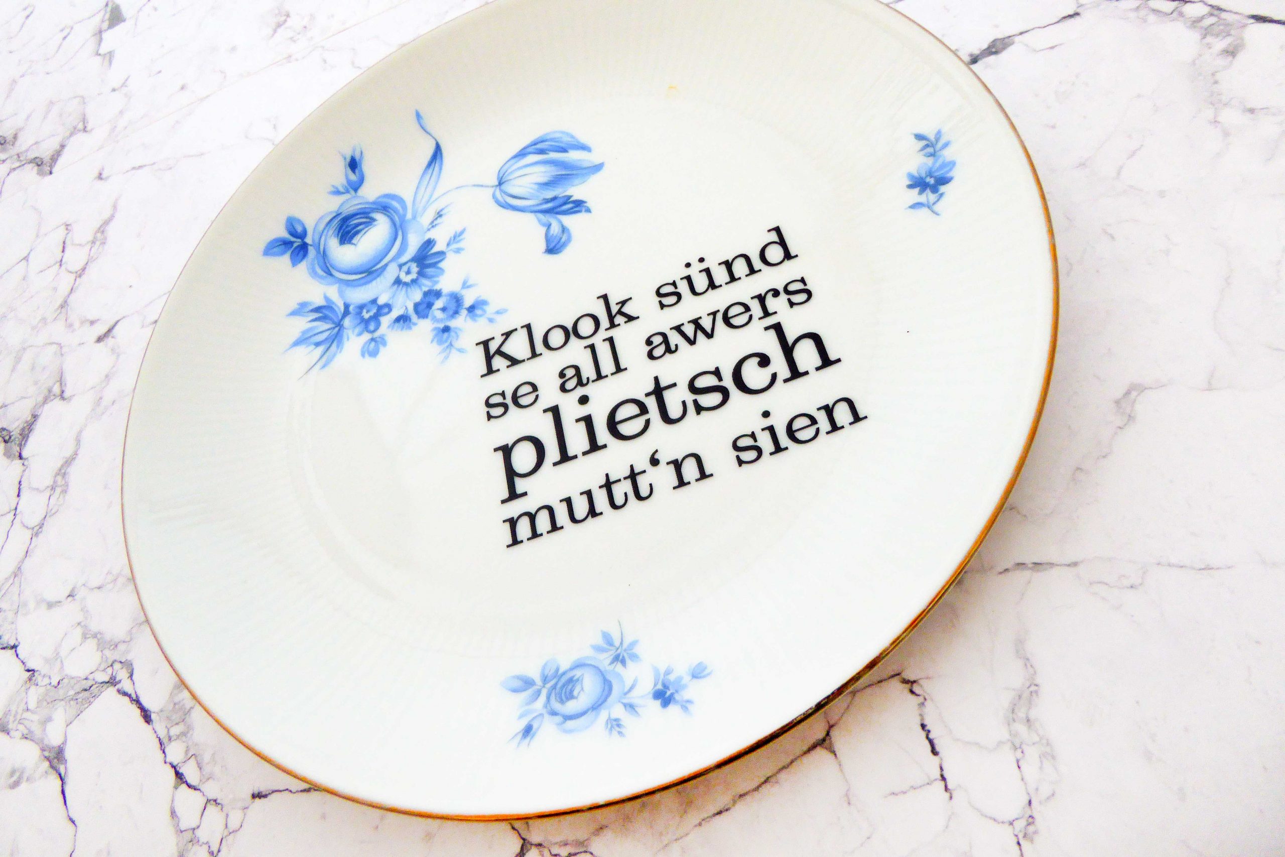 Unser Vintage Wandteller mit unserer Typo plietsch ist ein besonderes Stück für Deine Wand.