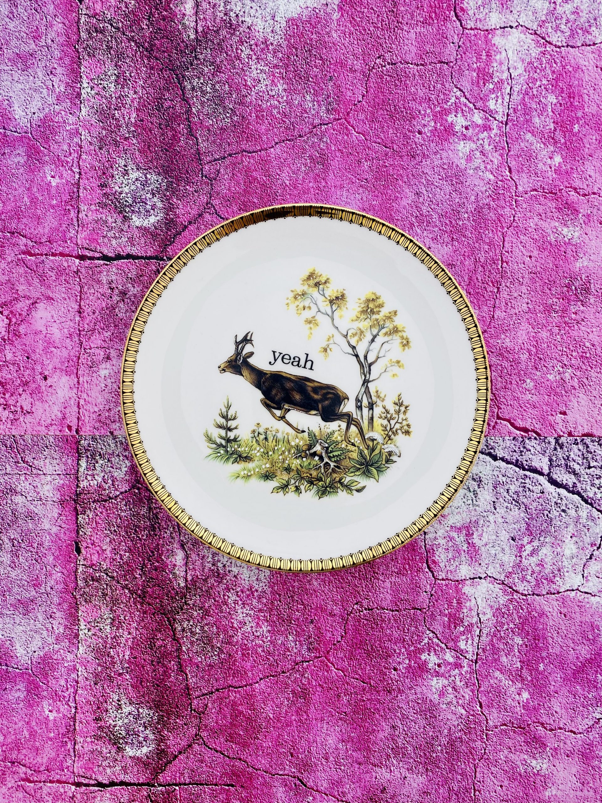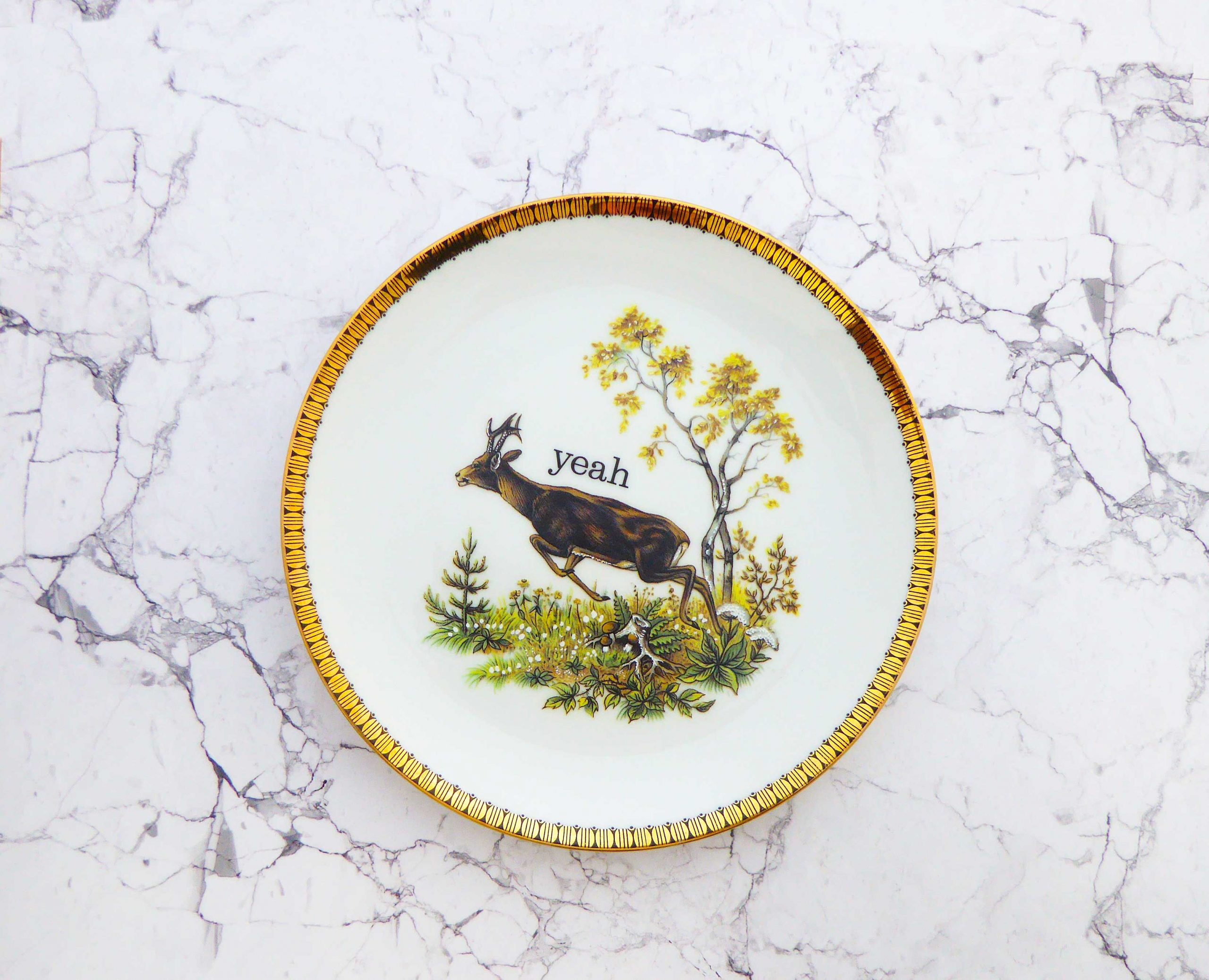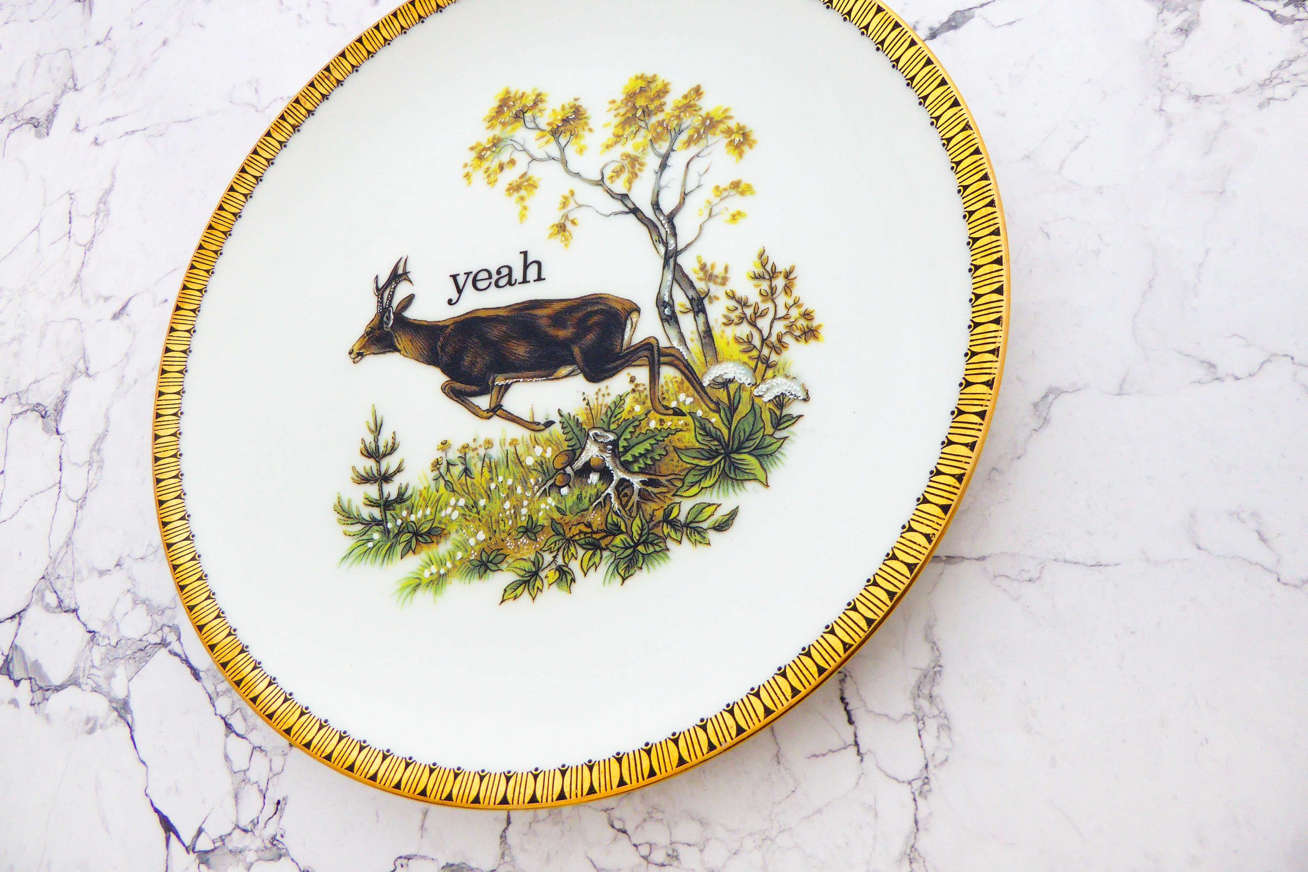 Wandteller Typo yeah vintage Herr Fuchs Teller Reh 19cm gold