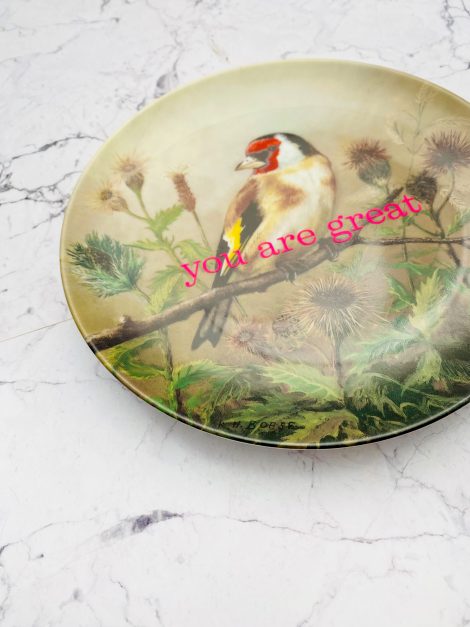 Wandteller you are great Herr Fuchs Vogel 19cm neonpink vintage wohnen