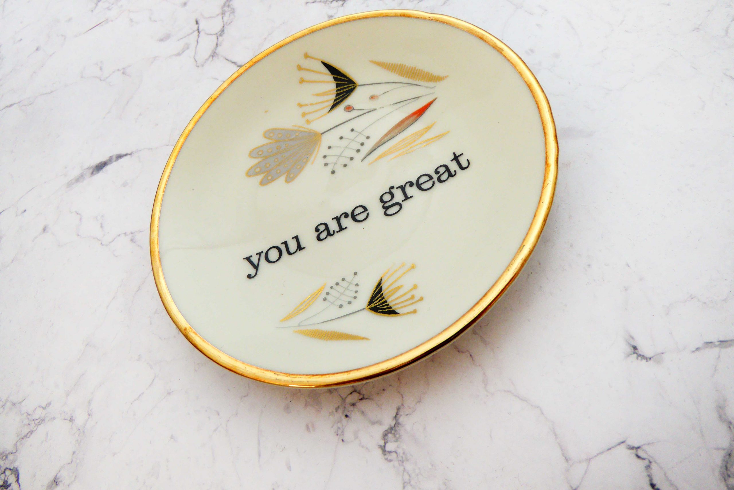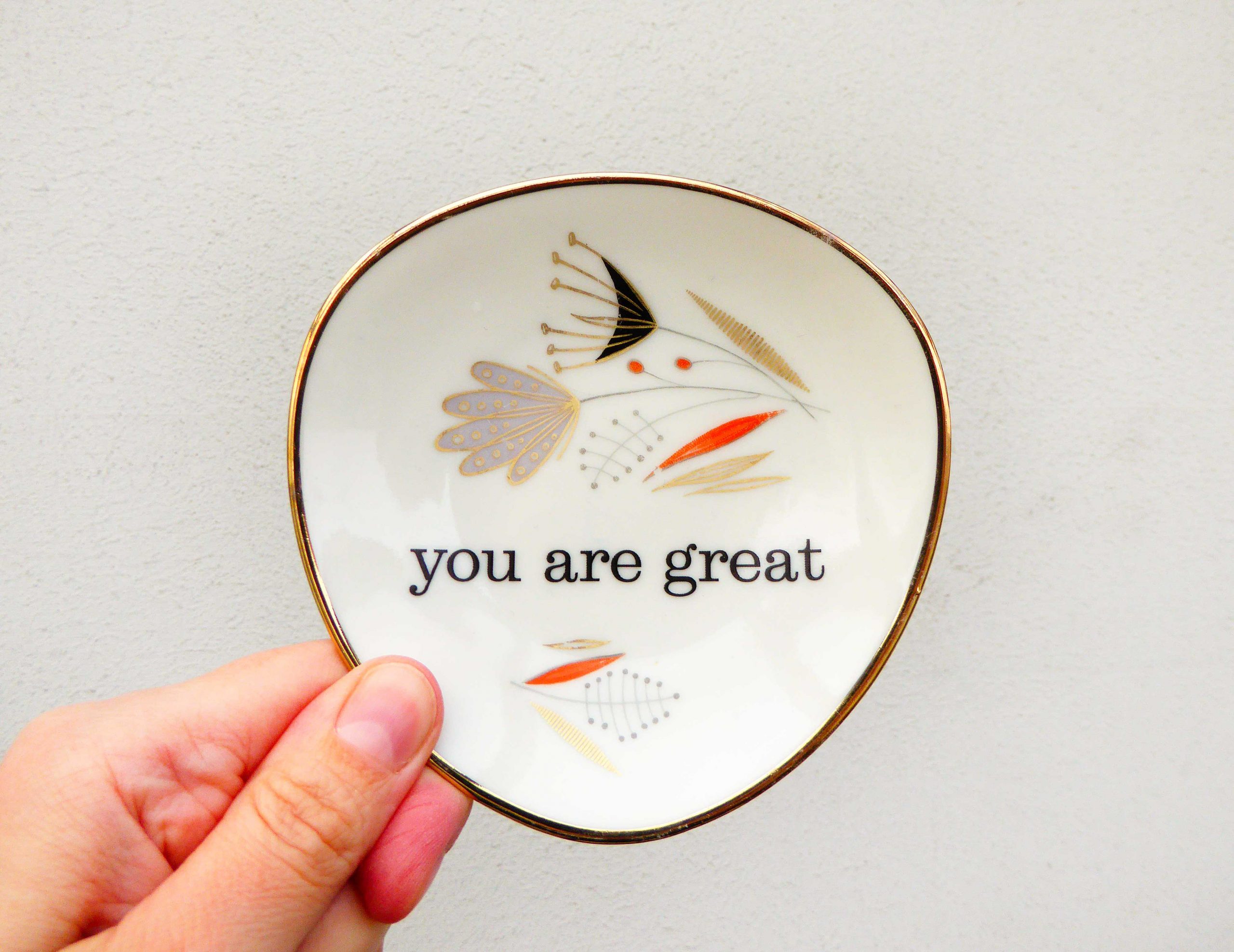 Unser vintage Wandteller mit unserem you are great Typo Motiv ist ein besonderes Stück für Deine Wand.