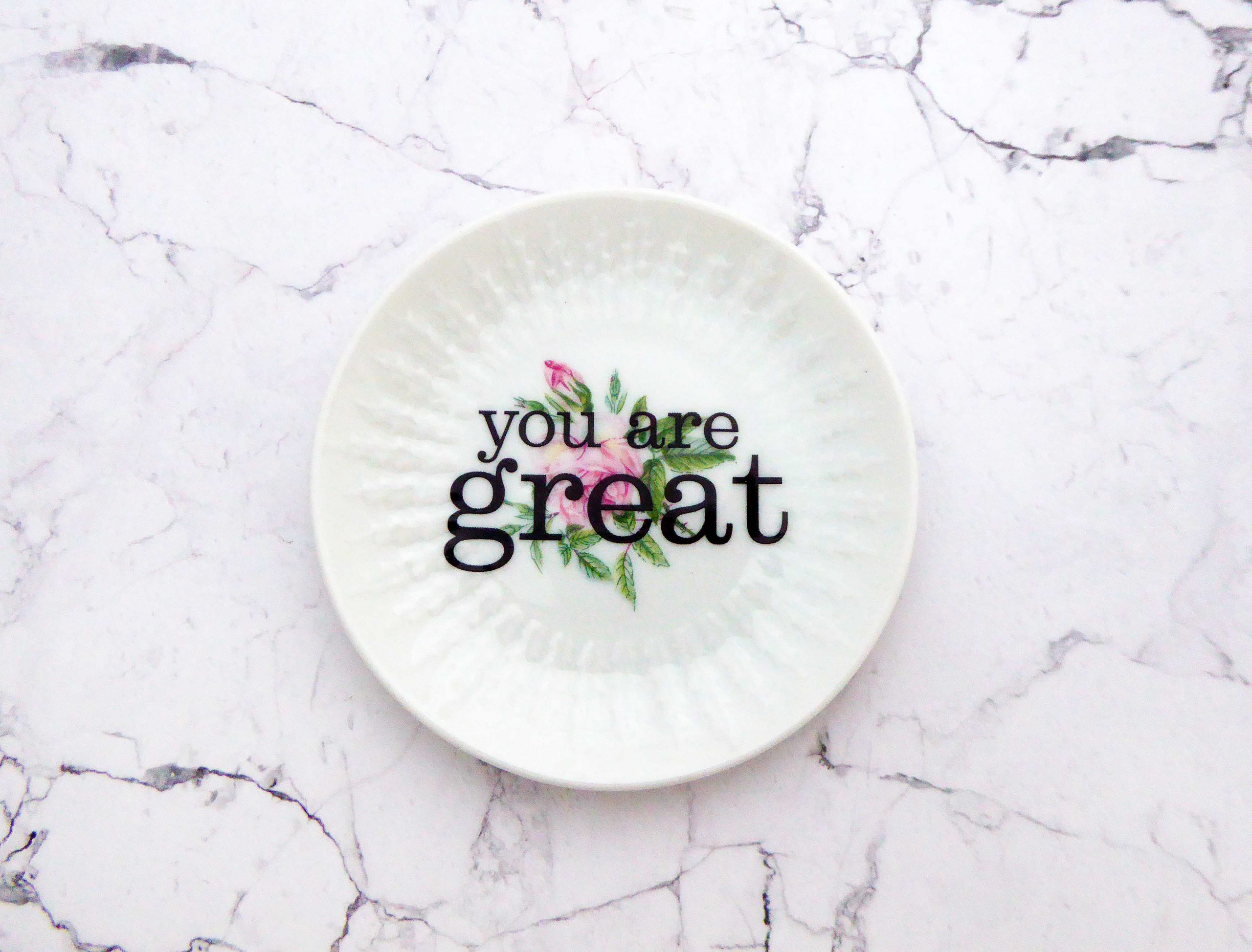Wandteller you are great vintage Herr Fuchs Teller mini 10cm Blumen grün rosa