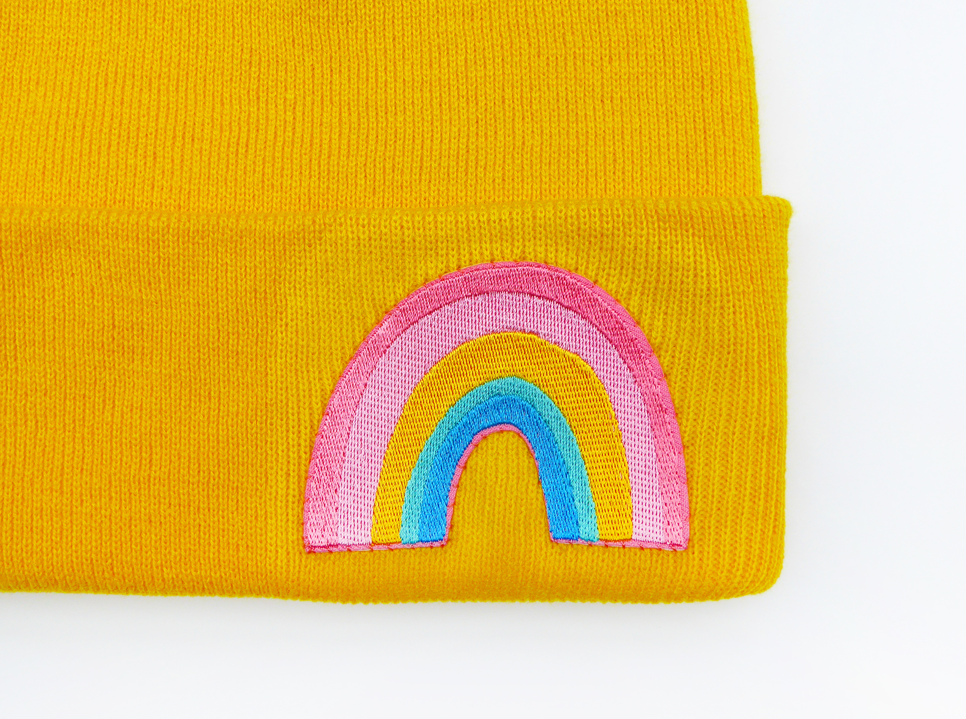 Der Patch ist gestickt und wird handgesteppt auf die Mütze, deshalb sind alle Stücke einzigartig.