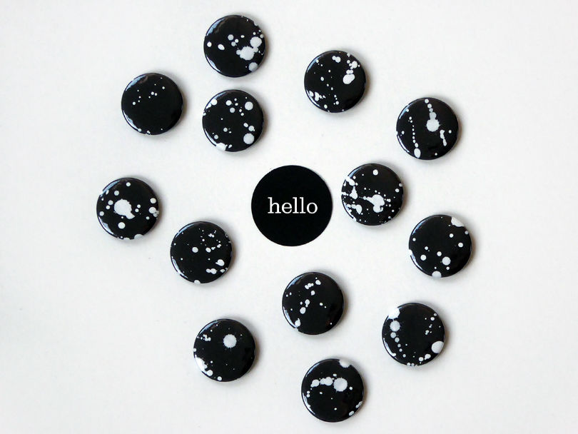 Schwarz/Weiß Magnet Set: 8 Magneten mit Klecksen und Punkten. Toll, für Deinen Kühlschrank oder jede Magnettafel. Weiß auf schwarz.