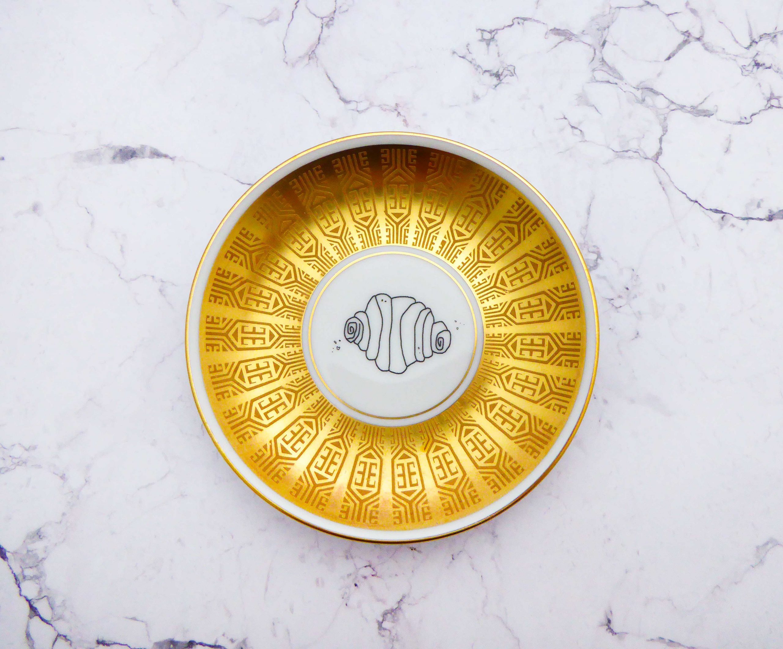 Jeder Wandteller wird handgefertigt und jeder der vintage Teller ist immer wieder ein Einzelstück. Dieser schöne Wandteller hat ein schönes breites Golddecor mit Muster und mit unserem Franzbrötchen Motiv kann er für alle Dekozwecke genutz werden.