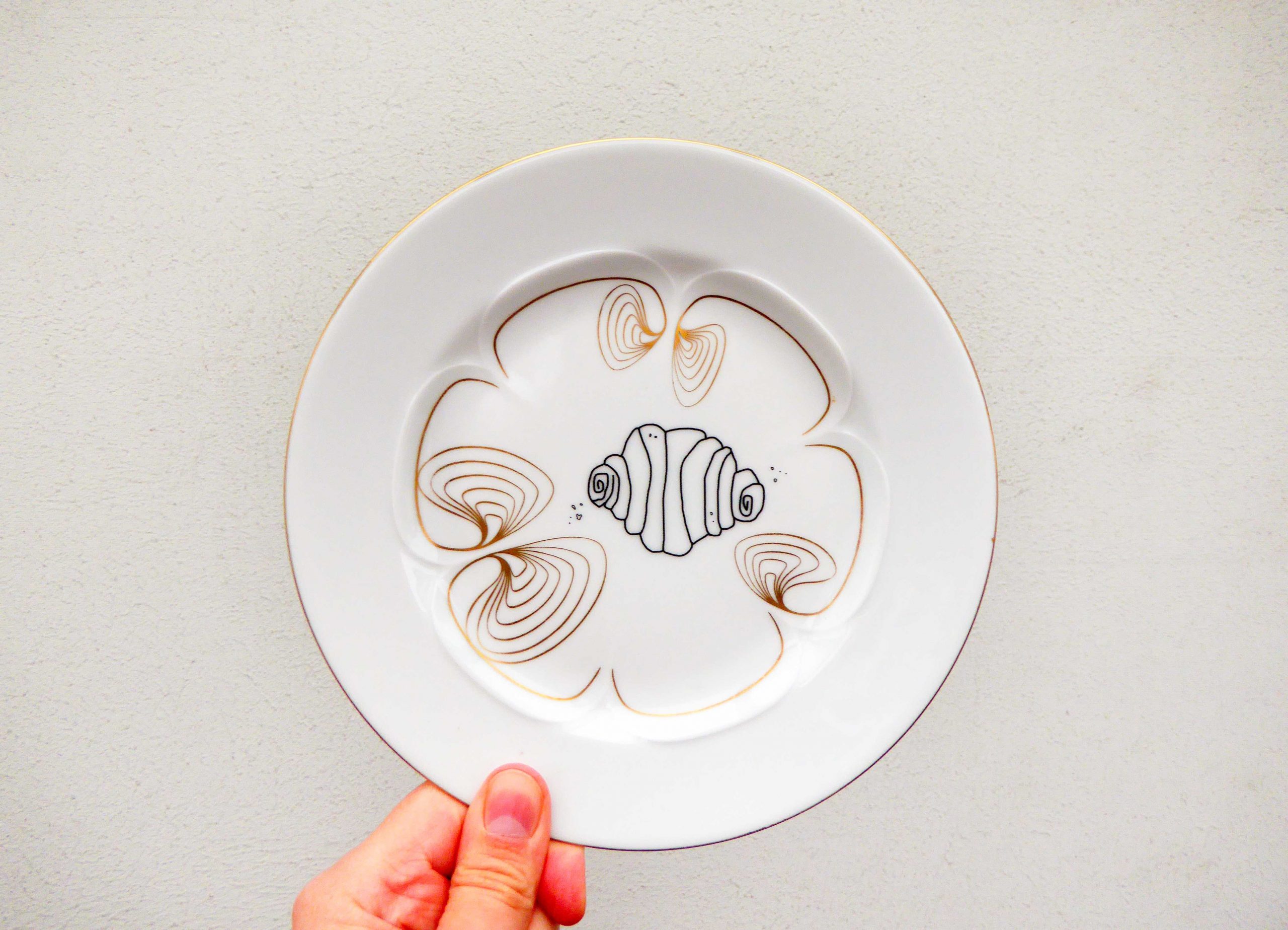 Wandteller Franzbrötchen vintage Herr Fuchs Teller Gold 17cm Hamburg Wohnen Muster