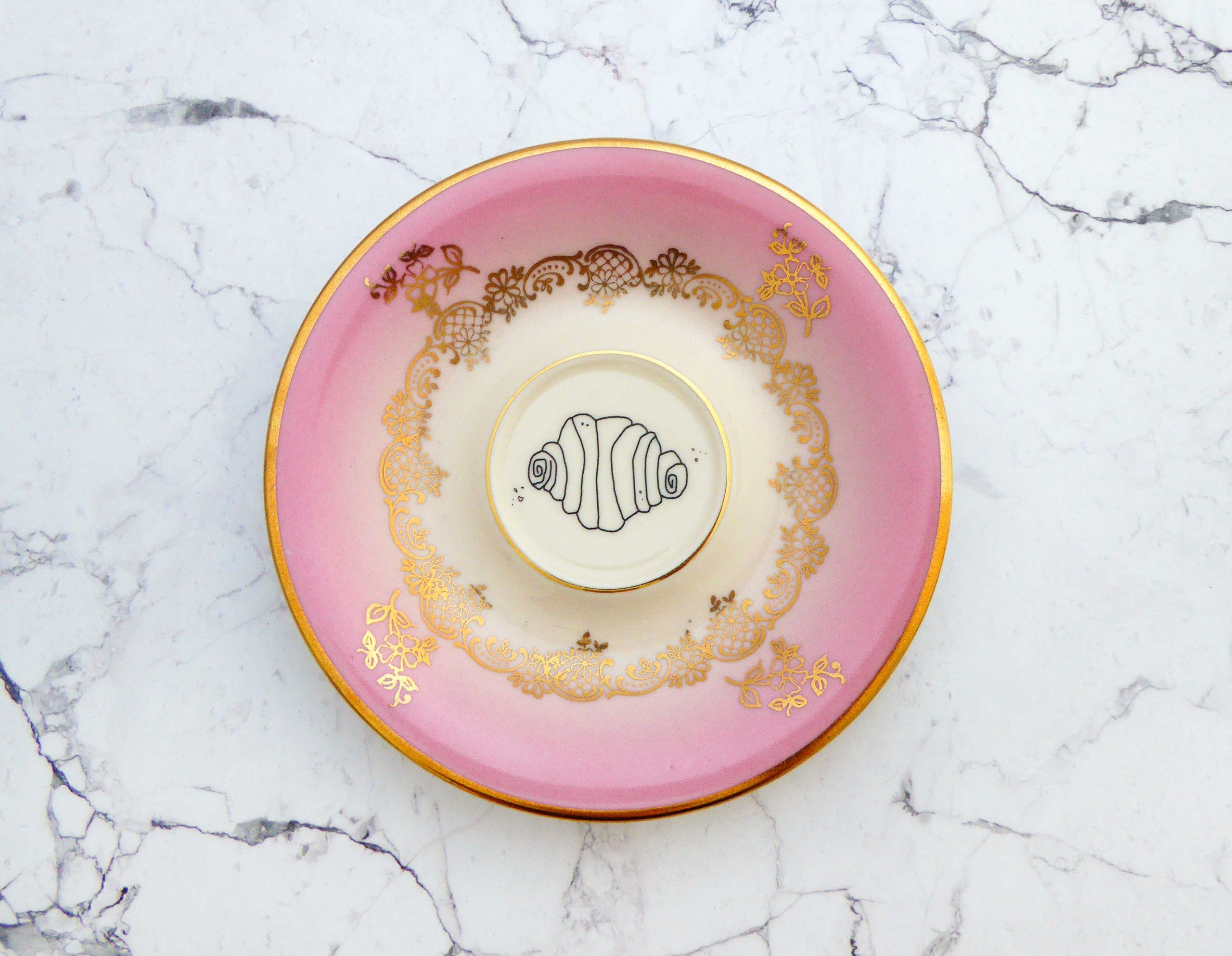 Jeder Wandteller wird handgefertigt und jeder der vintage Teller ist immer wieder ein Einzelstück. Dieser schöne Wandteller hat einen schönen Blumen Goldrand in rosa/gold und mit unserem Franzbrötchen Motiv kann er für alle Dekozwecke genutz werden.