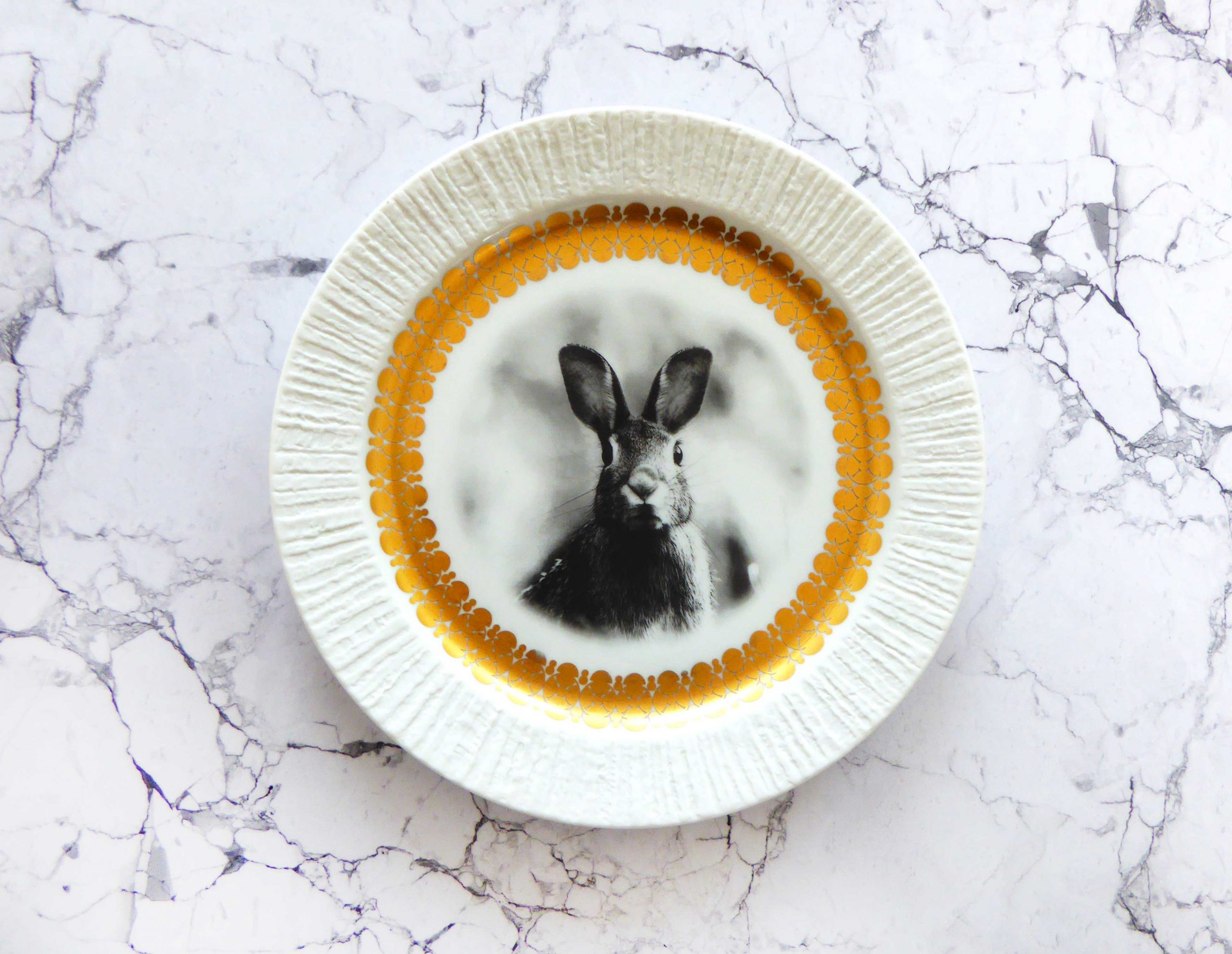 Wandteller Hase vintage Herr Fuchs Teller Gold Muster 19cm