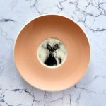 Jeder Wandteller wird handgefertigt. Dieser schöne Wandteller hat einen besonderen rosa/lachs Farbton. Mit unserem Hasen kann er für alle Dekozwecke genutz werden.