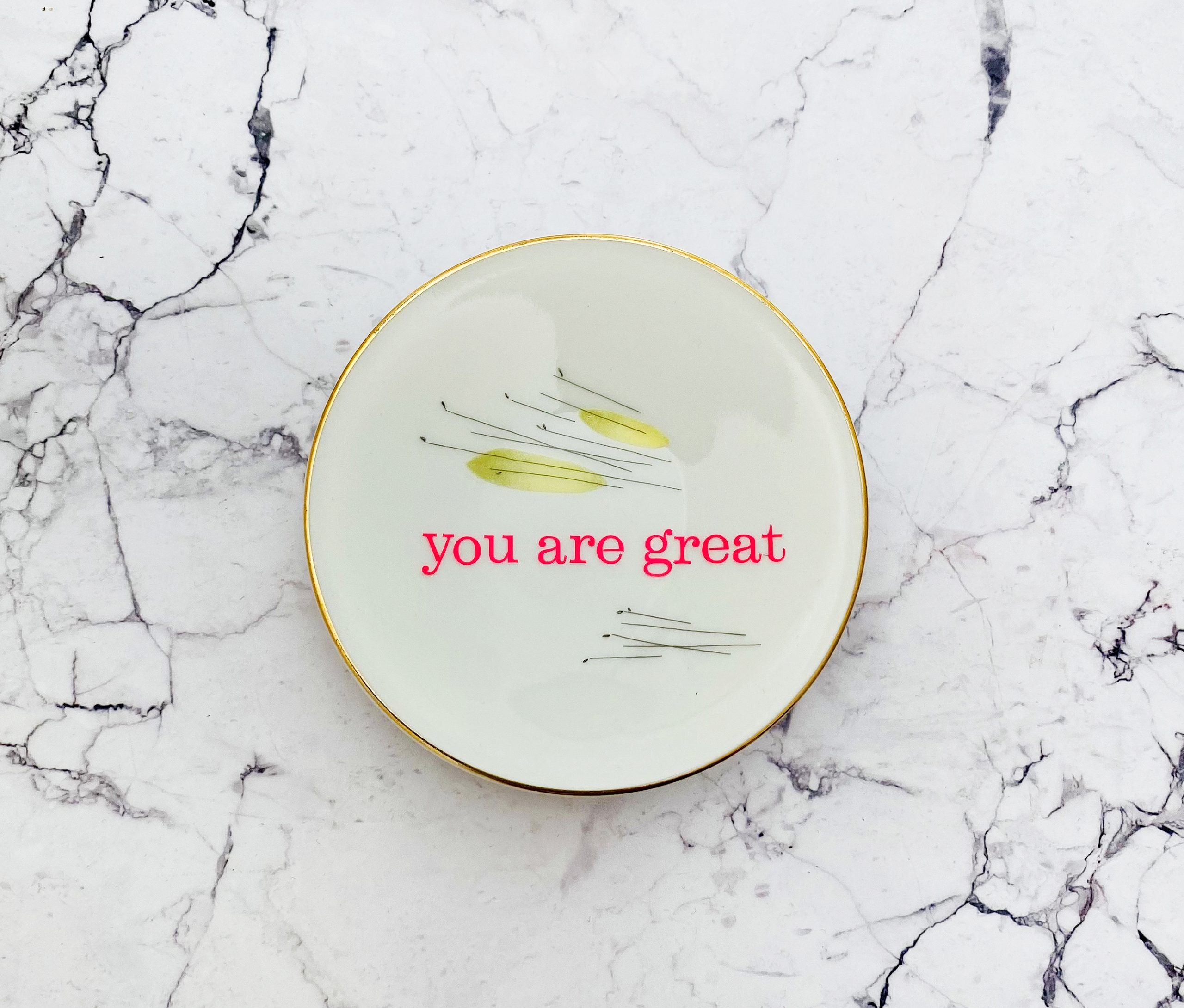 Unser Vintage Wandteller mit unserer Typo you are great ist ein besonderes Stück für Dein Zuhause.