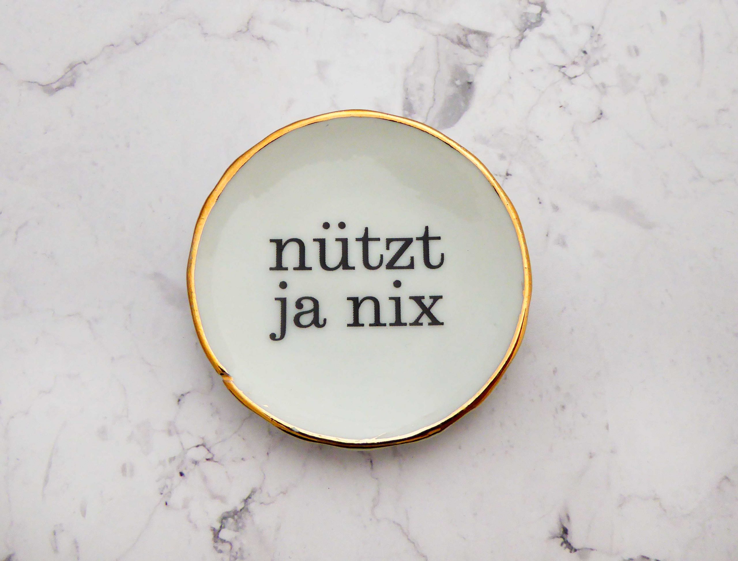 Unser Vintage Wandteller mit unserem Typo nützt ja nix ist ein besonderes Stück für Dein Zuhause.
