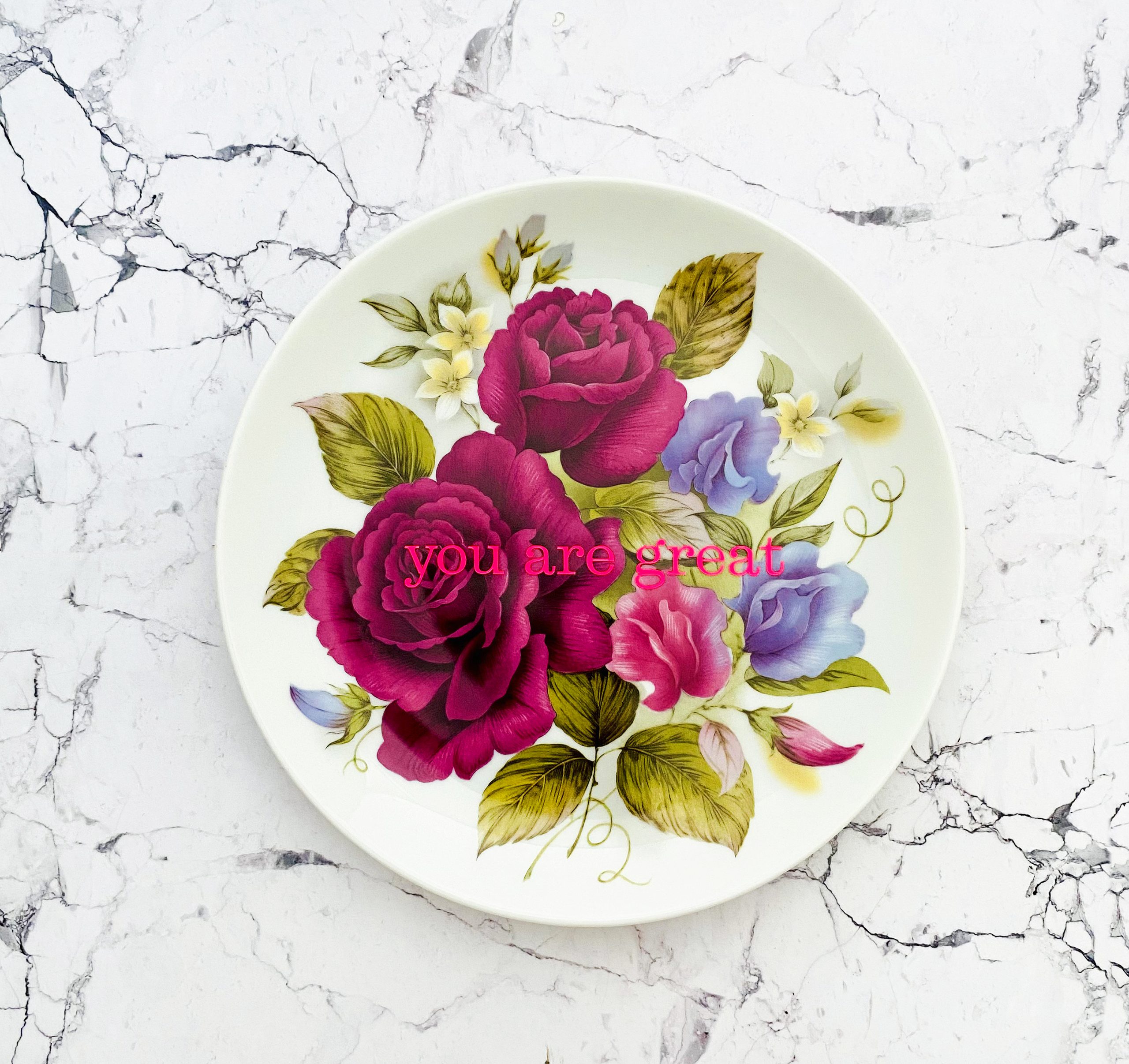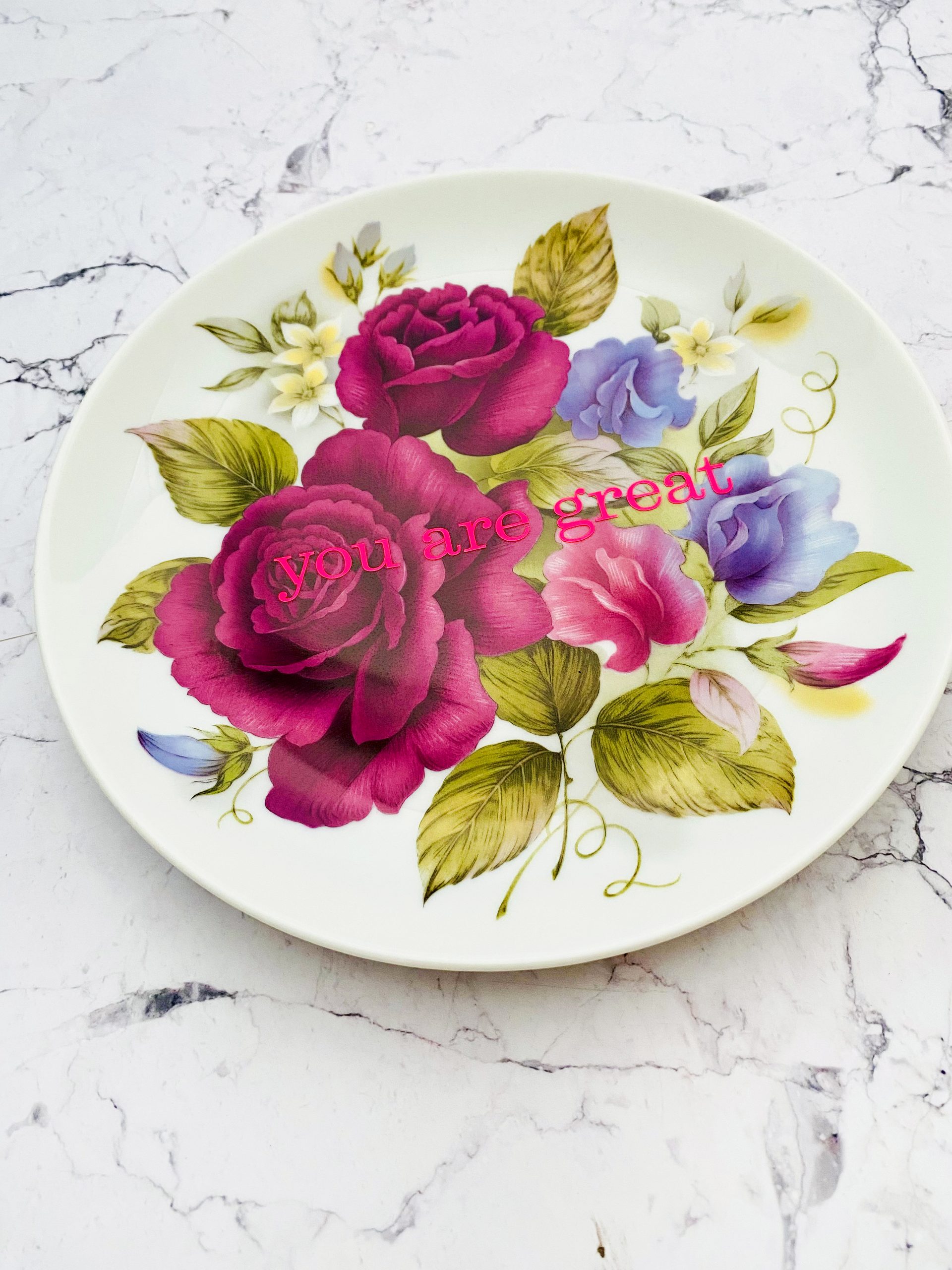 Wandteller you are great Herr Fuchs Blumen 19cm neonpink vintage wohnen lila/blau