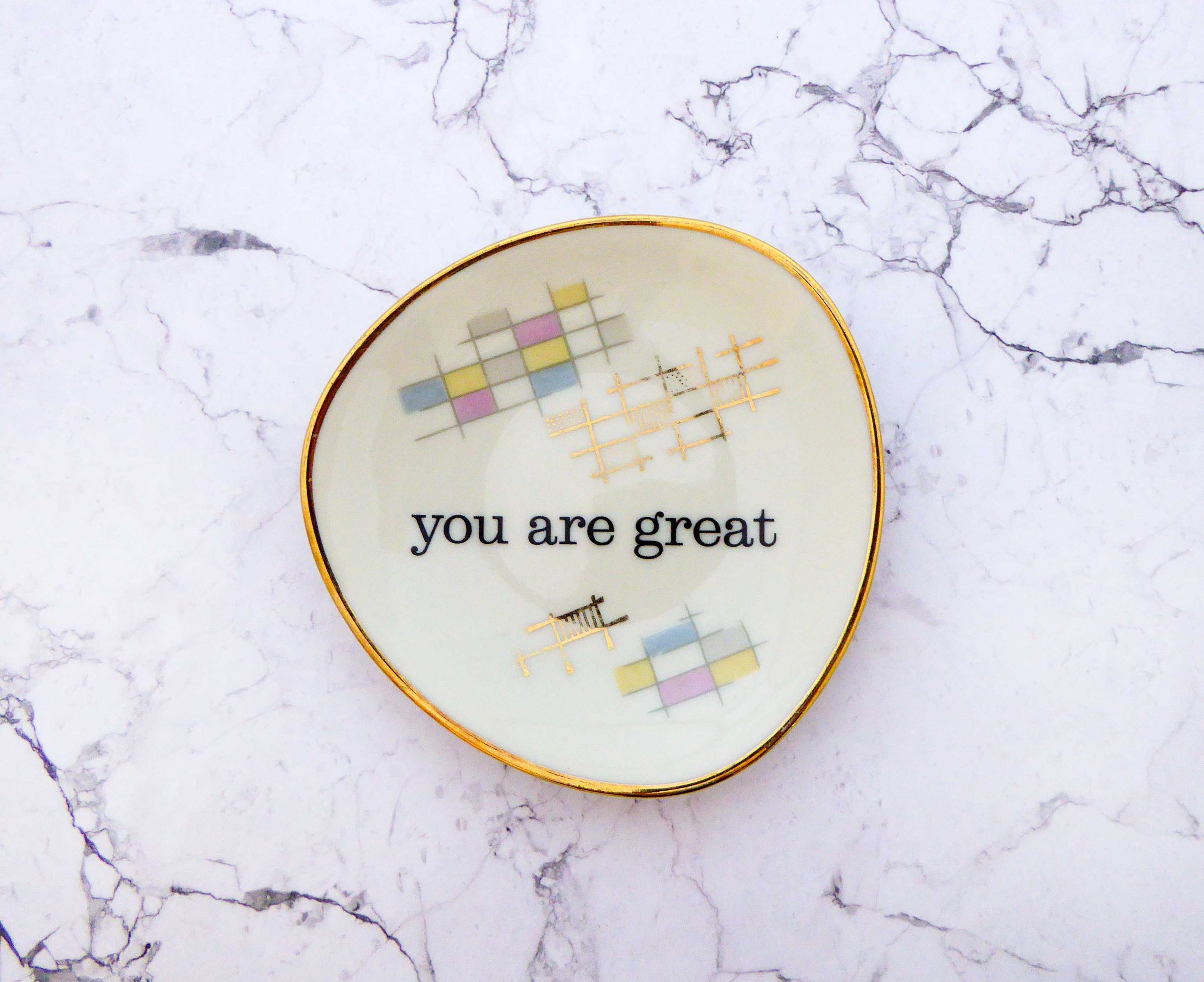Wandteller you are great vintage Herr Fuchs Teller Bunt mini 11cm Grafik gold eckig Muster